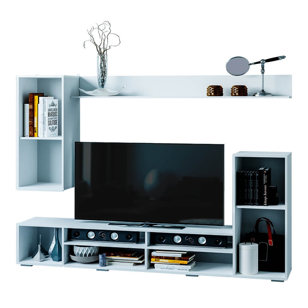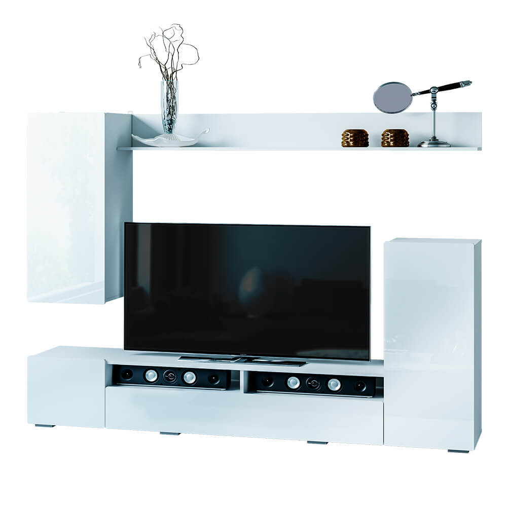 Гостиная Диаманд — это идеальный вариант для гостиной в современном стиле. Сдержанный дизайн позволяет воплотить любые идеи в интерьере. Конструкция сочетает в себе актуальные тенденции: белый глянец, скруглённые фасады МДФ и отсутствие лицевой фурнитуры. Декоративная панель с открытыми полками даёт возможность сделать телевизор стильным элементом интерьера и разместить на полках различные аксессуары.