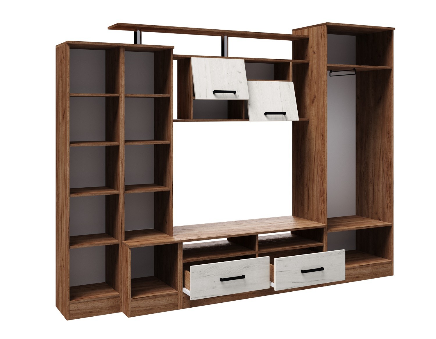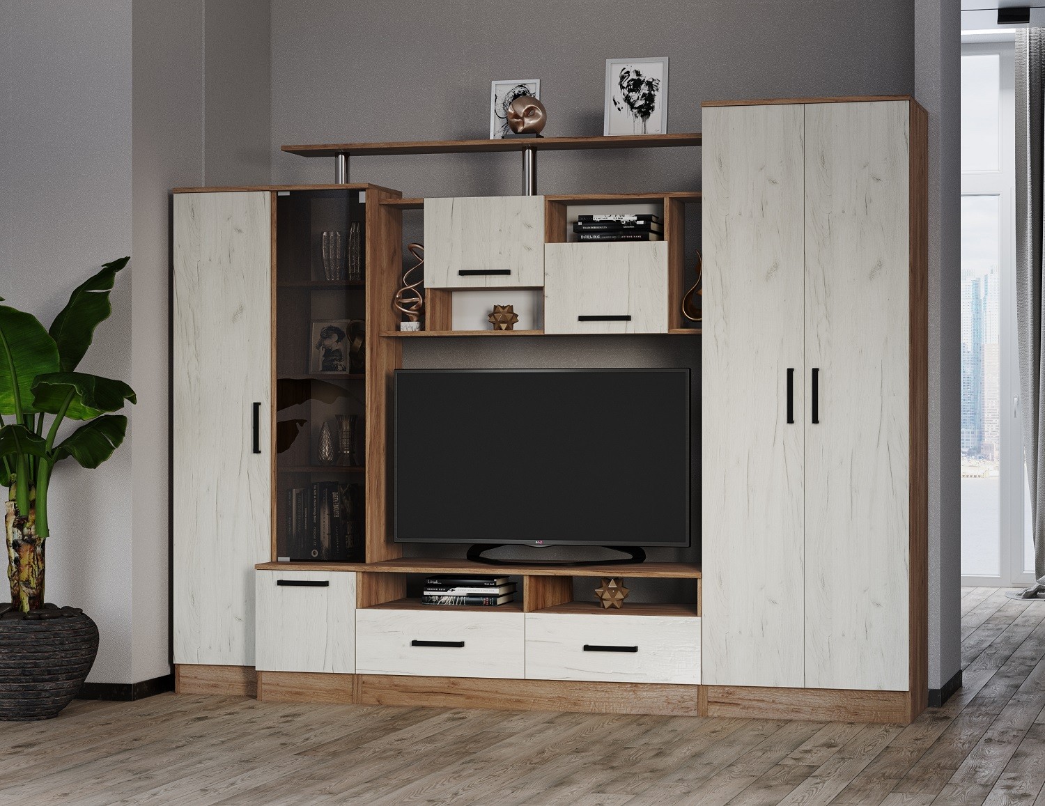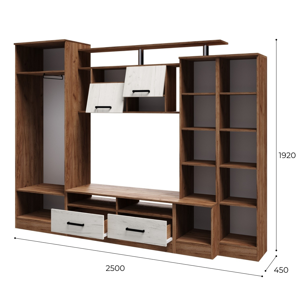 ГостинаяОскар 5обладает отличной функциональностью и комфортом при ежедневной эксплуатации. Эти необходимые свойства обеспечивает наличие нескольких вместительных секций, позволяющих с удобством разместить все нужные вещи. Продуманное цветовое решение мебели гарантирует ее совместимость с практически любым современным интерьером.