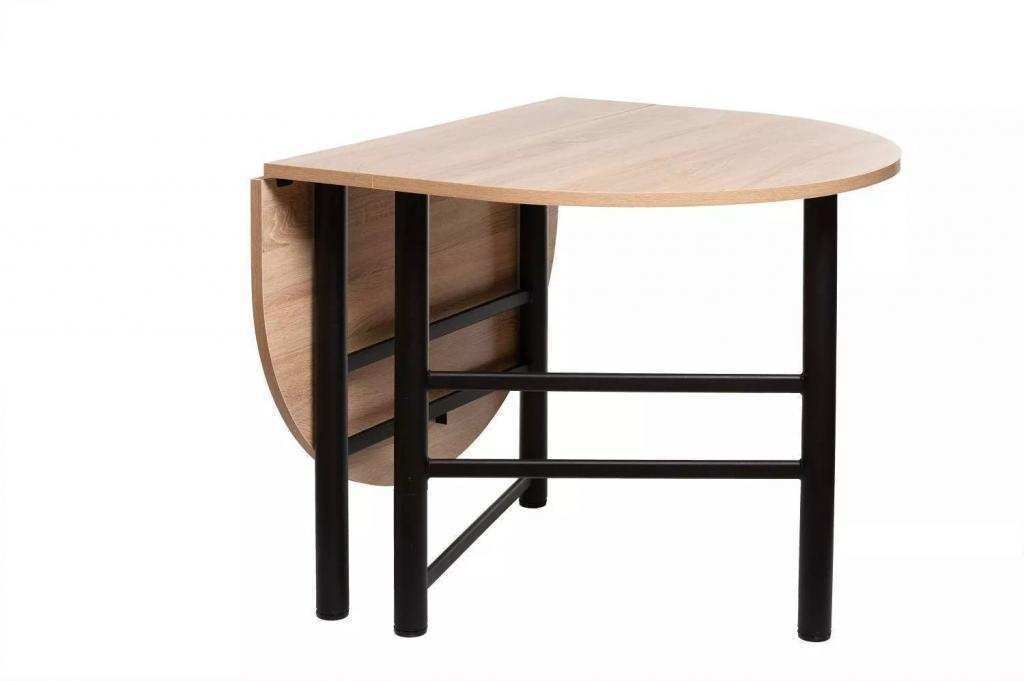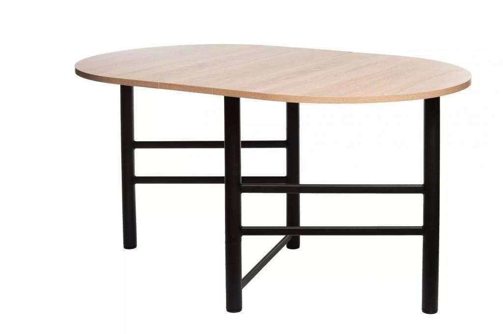 Стол-книжка Рим овал дуб сонома - это стильный и оригинальный раскладывающийся стол для повседневного использования. Стол имеет надежный металлический каркас, что является гарантией долговечной службы. Столешница овальная из качественной ламинированной ДСП с кромкой ПВХ. Размер столешницы в разложенном состоянии - 880 х 1400 мм. Стол отлично подходит к современным интерьерам кухонь. Каркас черный, столешница дуб сонома.