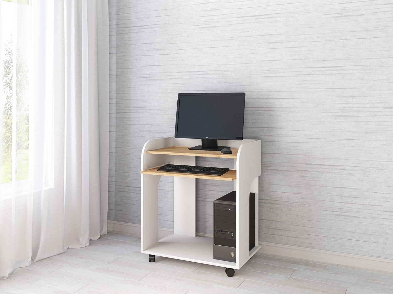 Грета-10 - модель компьютерного стола для любителей минимализма и порядка. Оснащен всем самым необходимым: компактной столешницей, на которой поместится моноблок или ноутбук, нижней полкой для процессора и выезжающей открытой полкой на роликовых направляющих для клавиатуры. Размер стола позволит разместить его даже в небольшом помещении, не загромождая пространство. А колесные опоры - свободно передвигать стол по комнате.