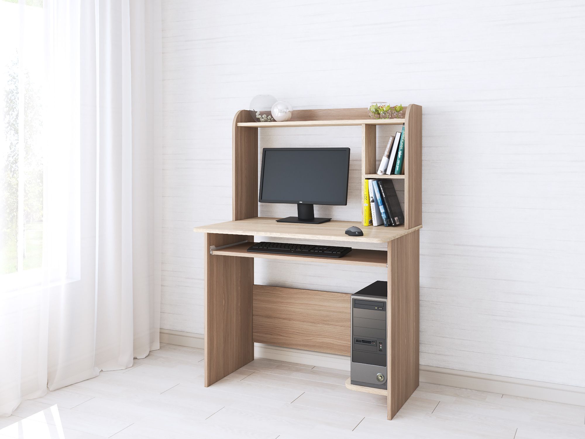 Модель компьютерного стола Грета-2 подойдет всем, кому для работы необходим не только компьютер, но и просторная столешница. Ее ширина в 90 см позволит Вам комфортно располагаться за столом, не стесняя движений, а скругленные углы обеспечат безопасность. Выдвижная панель для клавиатуры установлена на роликовые направляющие. Опоры стола имеют пластиковые подпятники, предохраняющие напольное покрытие от повреждения. Функциональная надстройка пригодится для хранения органайзера, документов и книг.
