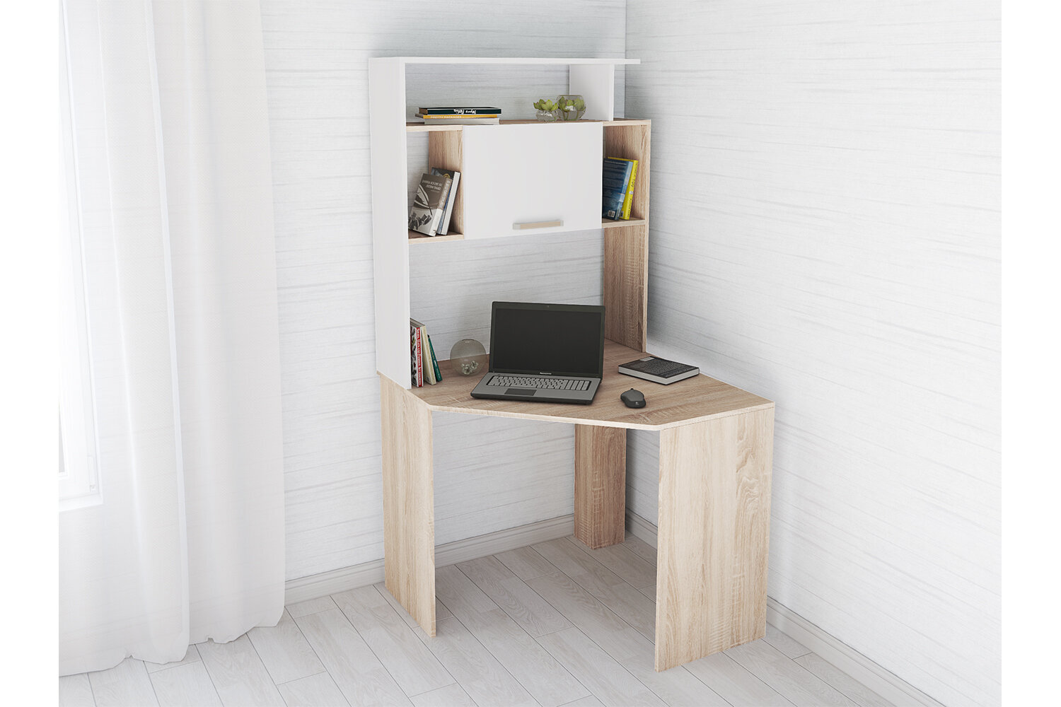 Угловой компьютерный стол Квартет-12 состоит из просторной столешницы и надстройки с отрытыми и закрытыми нишами. За таким столом будет приятно и комфортно работать, учиться или заниматься хобби. Угловая конфигурация стола позволит сэкономить пространство в комнате, поэтому Вы сможете обустроить рабочую зону даже в малогабаритном помещении.