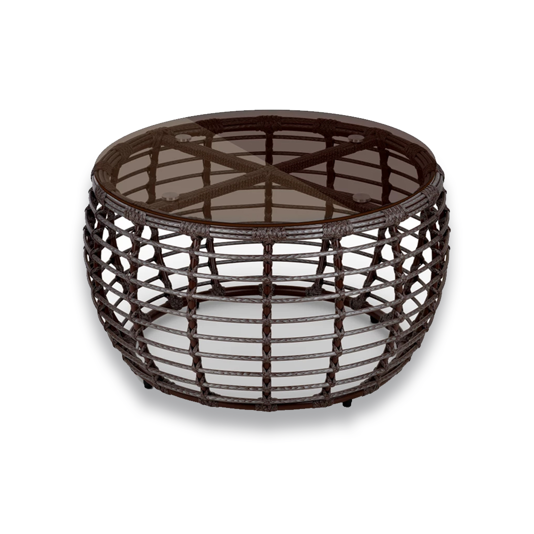 Кофейный стол с алюминиевым каркасом и стеклянной столешницей. Ажурное основание придаёт модели лёгкость, а устойчивость к погодным условиям позволяет использовать её как в интерьере, так и на открытом воздухе. Отлично сочетается с другими элементами коллекции ЛОТУС.