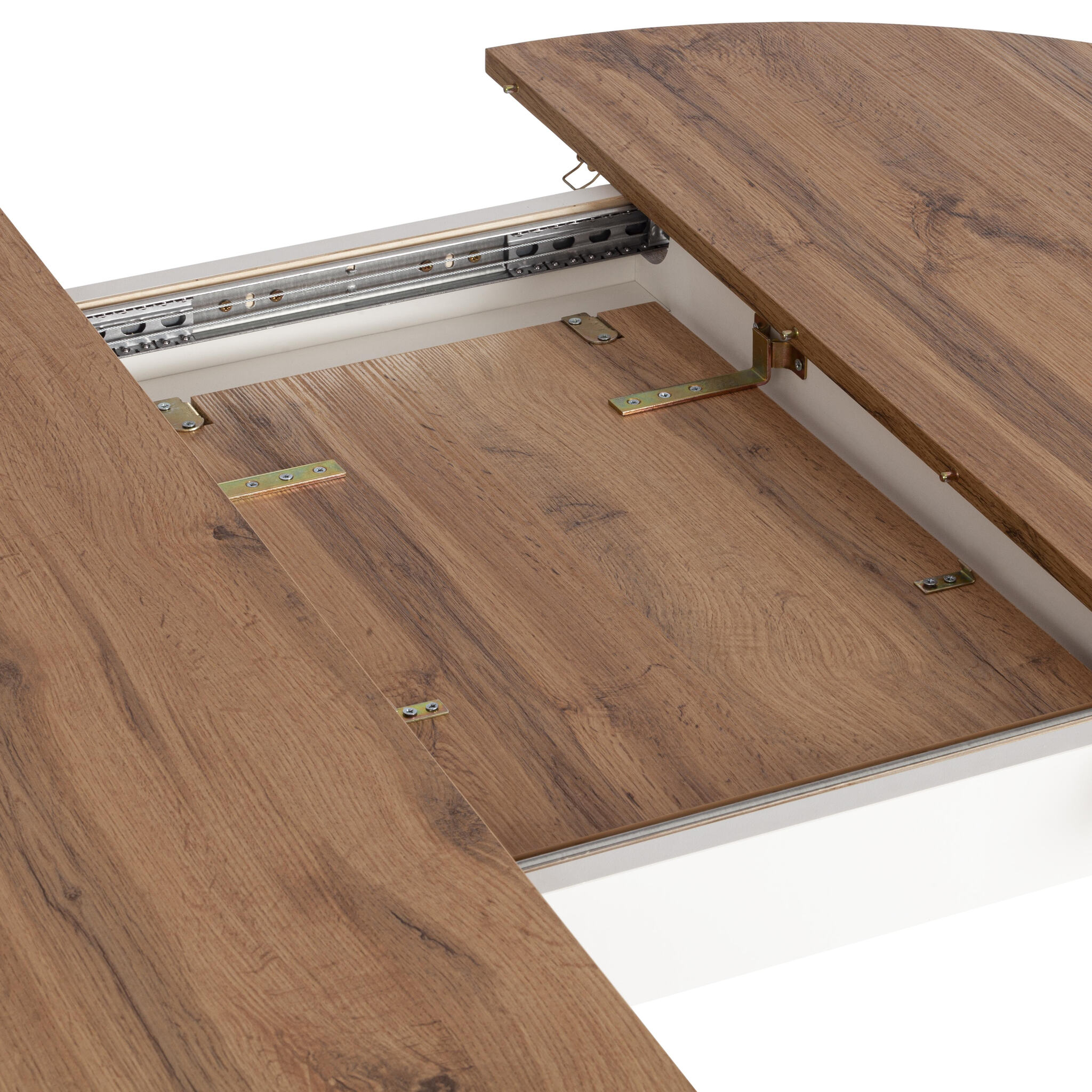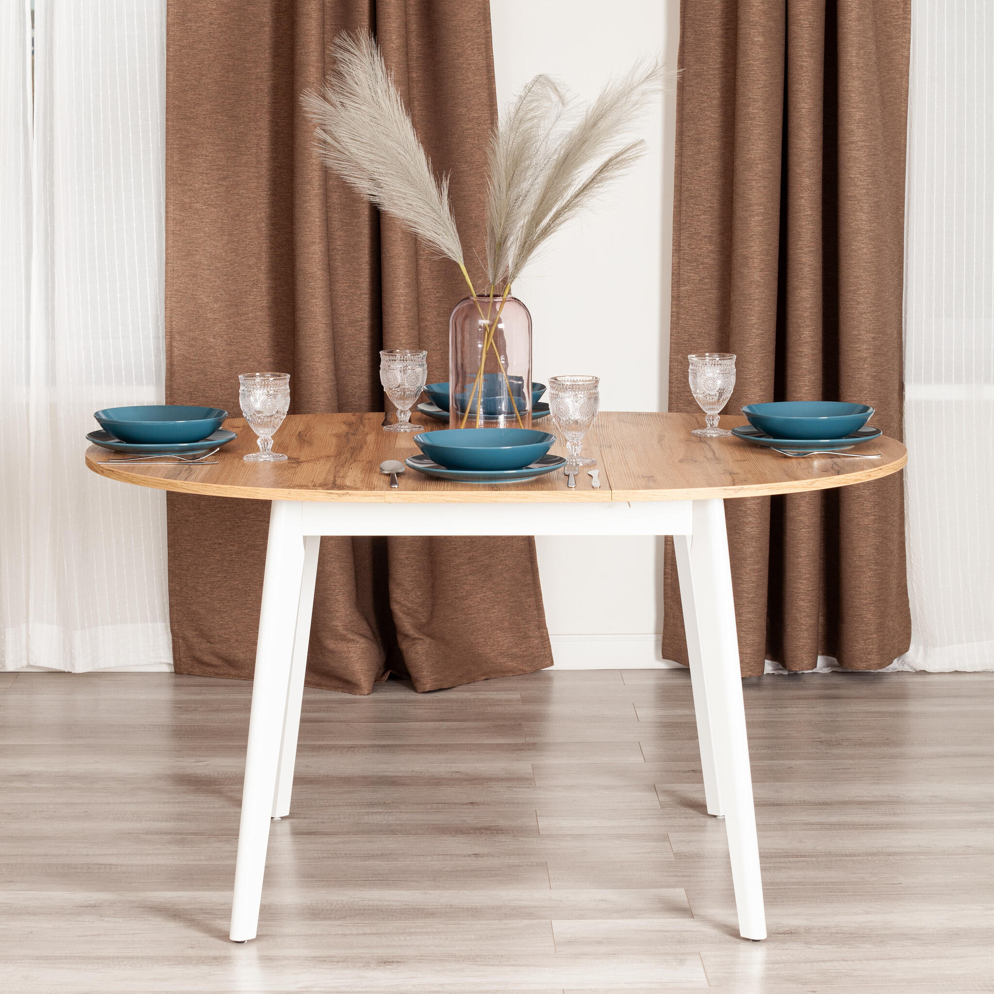 Одновременно простой и невероятно стильный обеденный стол SVELTO поможет создать уют и комфорт в вашем доме. Круглая столешница изготовлена из ЛДСП 18 мм, кромка выполнена из ABS 2мм. Такая поверхность обладает отличными эксплуатационными качествами, не требует сложного ухода, выдерживает воздействие жидкости и тепла, устойчива к возникновению порезов и царапин. Царговый пояс выполнен из ЛДСП 18 мм, кромка из ABS 0,5мм. Удобная конструкция стола с раздвижным механизмом бабочка поможет грамотно организовать пространство и комфортно разместить от четырех до шести человек. Модель не имеет острых углов, что является неоспоримым преимуществом при выборе предмета интерьера для дома. Ножки из массива березы основательны и надежны. Обеденный стол SVELTO удачно впишется в интерьер квартиры, загородного дома, кафе или ресторана. Контрастное сочетание белого основания и столешницы цвета Дуб Вотан выглядит стильно и непринужденно. Уникальная модель впечатлит своей прочностью, простотой в уходе и долговечностью, придаст помещению элегантность, изысканность и акцентирует внимание гостей на обеденной зоне. Стол поставляется в разобранном виде, необходима простая сборка по прилагаемой инструкции.