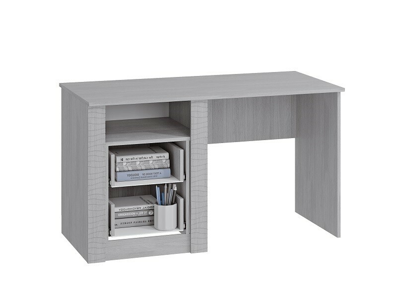Хотите купить не только удобный, но и стильный письменный стол? Модуль из коллекции Монако - то, что Вам нужно! Оснащен двумя плавно открывающимися ящиками, небольшой открытой нишей и просторной столешницей. Вставки из МДФ на фасаде стола и эксклюзивные хромированные ручки выглядят оригинально на фоне светлого серого декора, имитирующего текстуру дерева. Вы можете использовать модель в качестве туалетного стола в спальне с мебелью Монако.