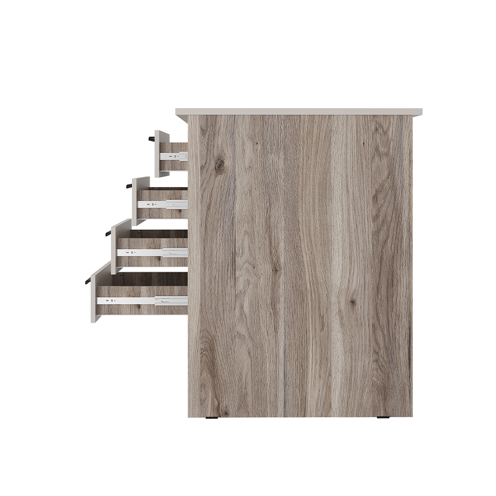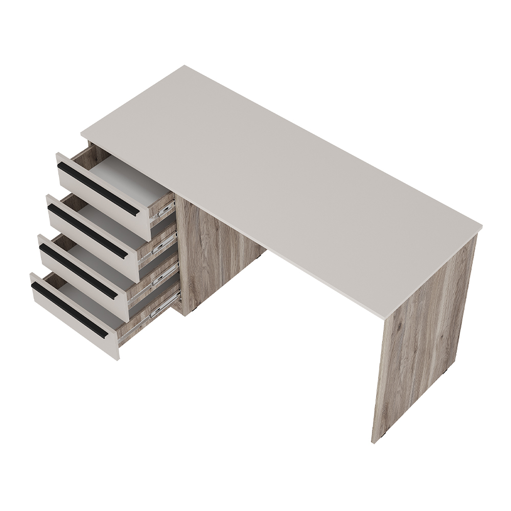 Письменный стол Урбан ПС-05 – это стильная минималистичная модель, идеально подходящая для учебы и работы. Просторная столешница позволяет удобно расположить все необходимые книги, устройства и важные мелочи. Для дополнительного хранения предусмотрены вместительные ящики с эргономичными пластиковыми накладными ручками черного цвета.