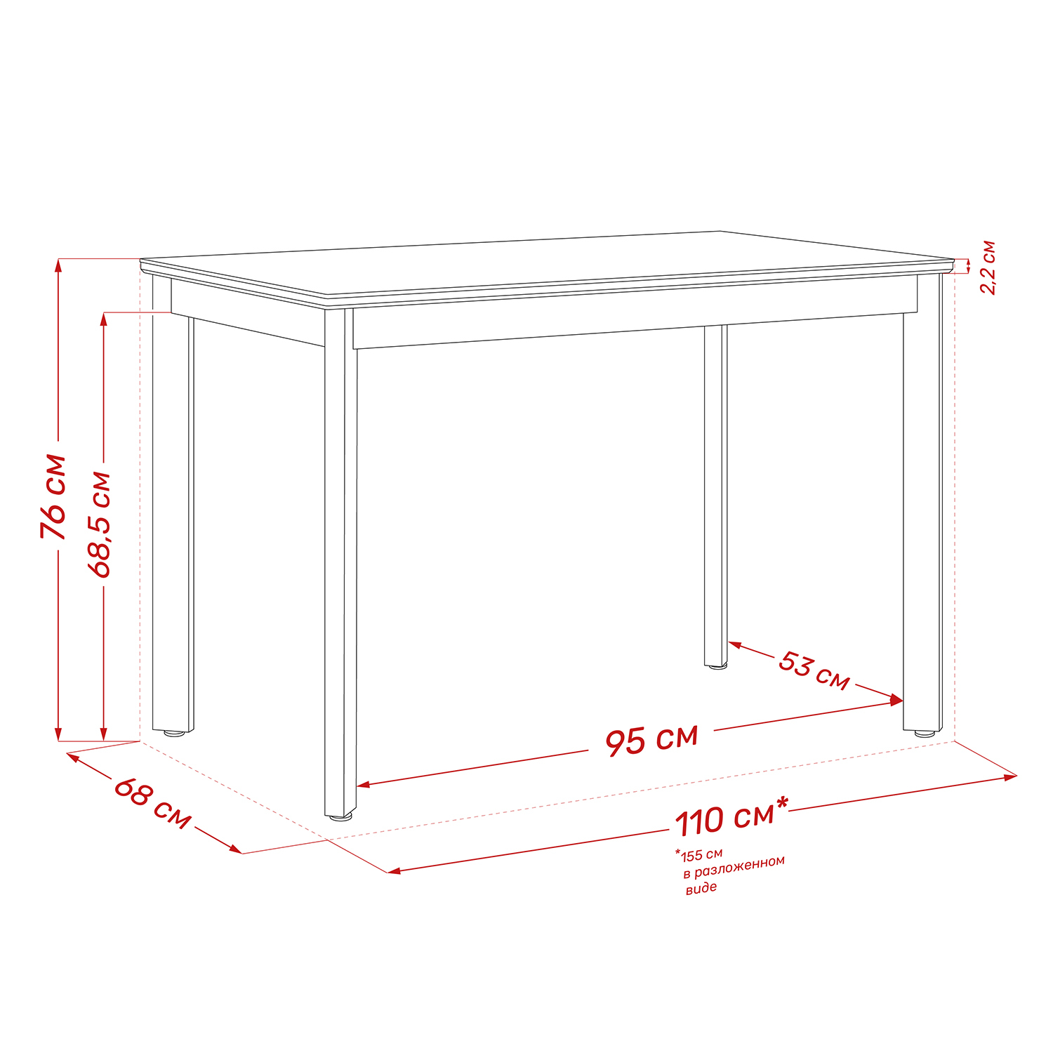 Размер столешницы в разложенном виде