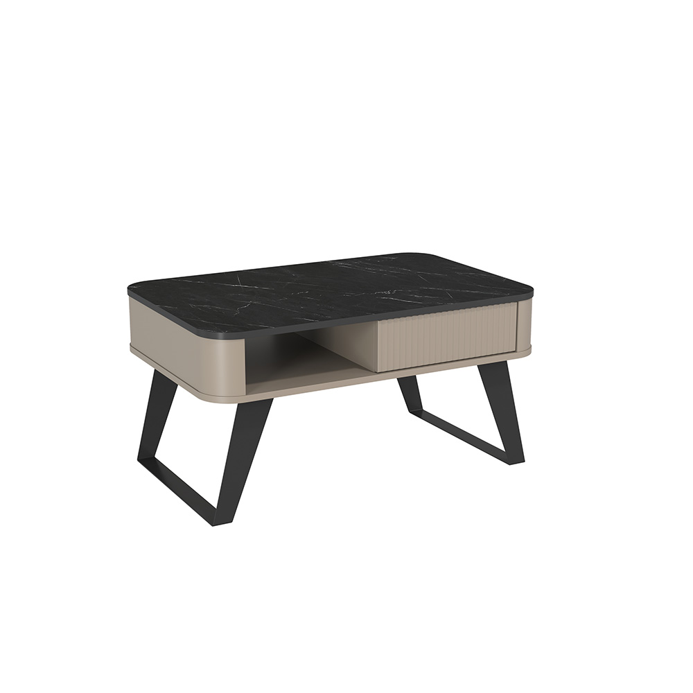 Современный дизайн журнального стола Фиделия добавит нотки индустриального шарма в ваше пространство. Этот изящный и функциональный предмет мебели станет незаменимым элементом интерьера, подчеркивая вашу индивидуальность и вкус. Изящные высокие металлические ножки придают ему элегантный современный вид. Под столешницей находится полка и небольшой ящик для важных мелочей. Ящик открывается нажатием на фасад (ПУШ система). Он станет отличным местом для хранения книг, журналов или просто центром уютной зоны отдыха.