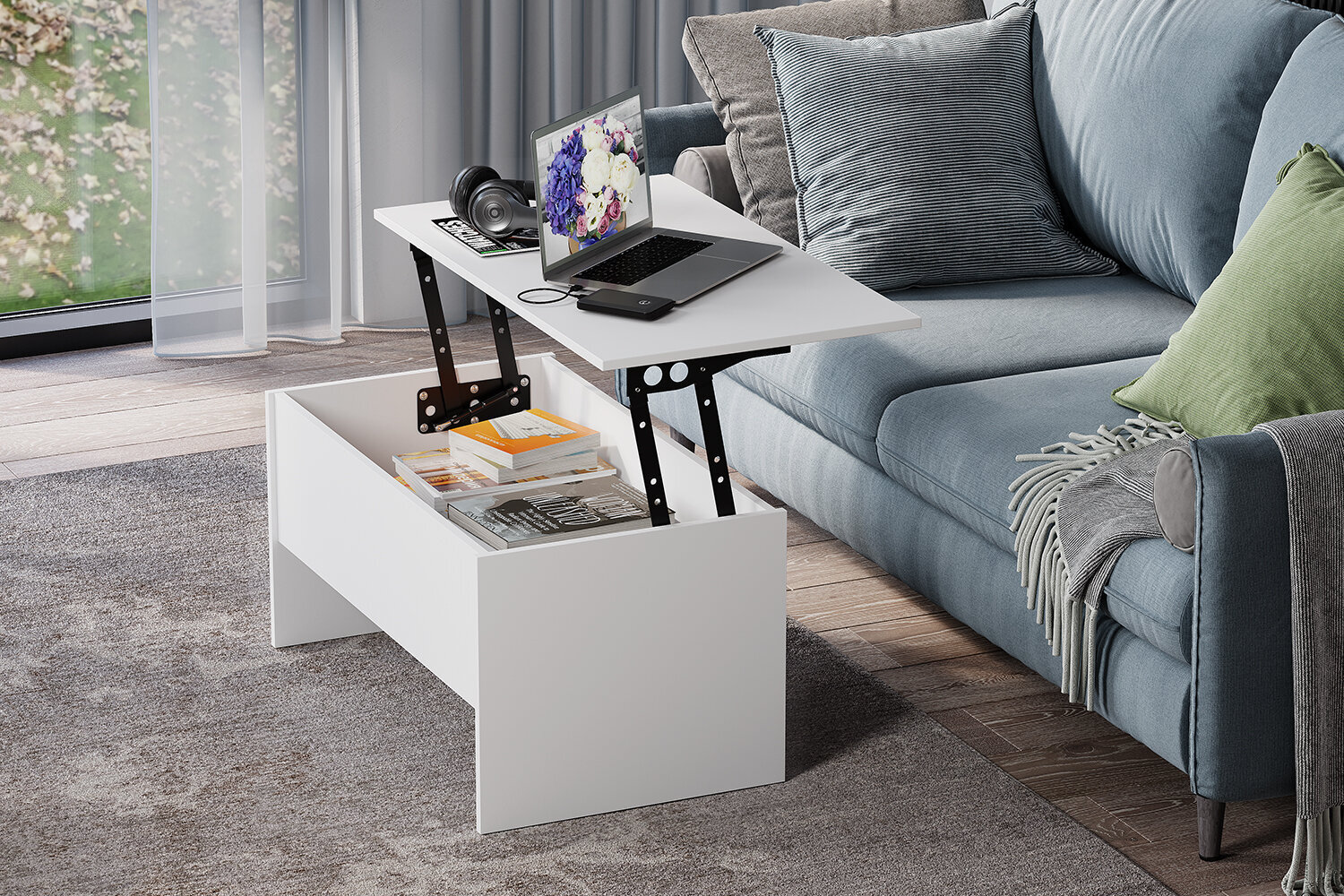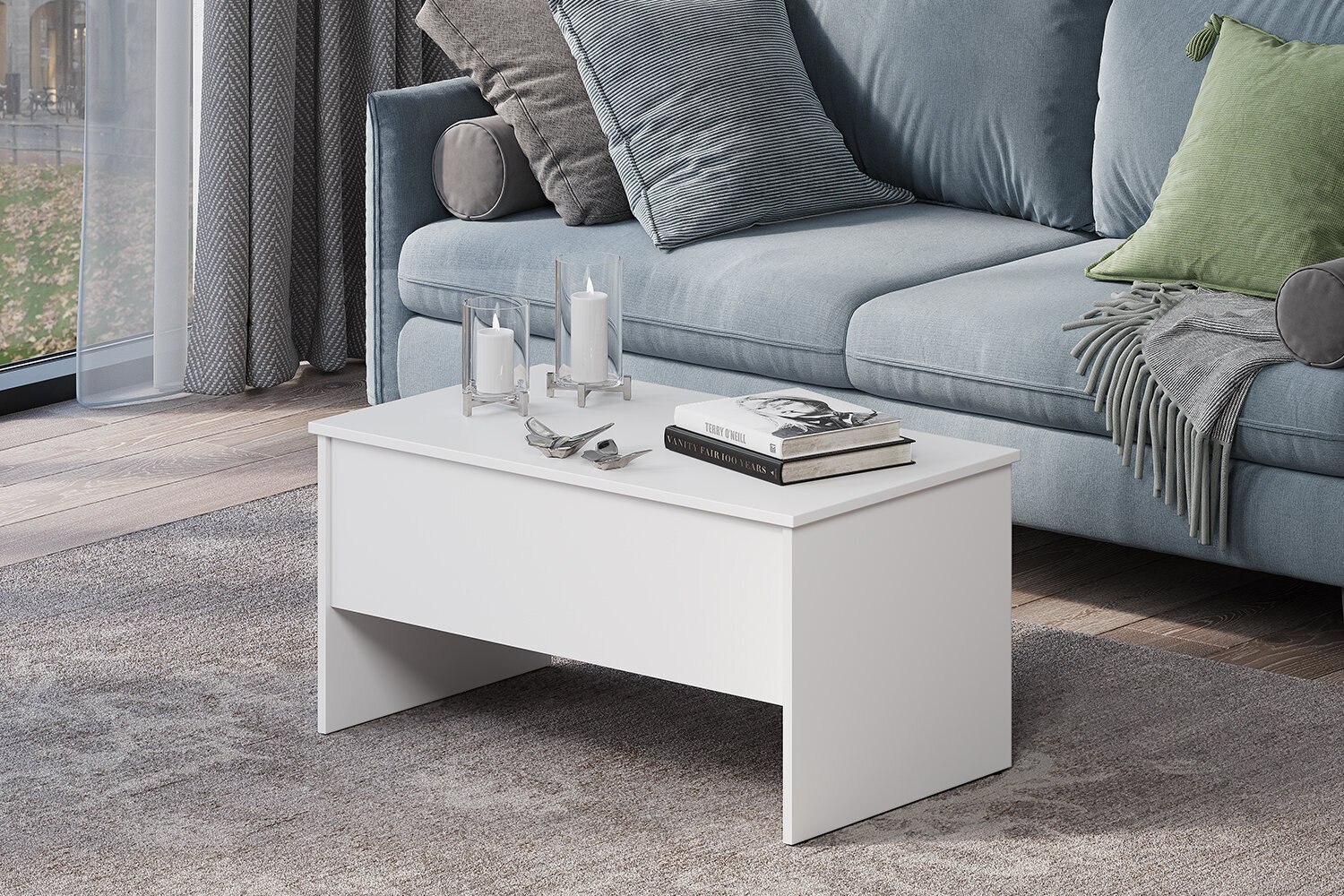 Трансформируемый журнальный столик Эко с закрытой нишей для журналов или документов. Данный стол можно использовать как рабочую зону для ноутбука, обеденный стол, детский стол для выполнения домашнего задания или рисования. Механизм трансформации прост и выполнен с выносом в сторону пользователя.