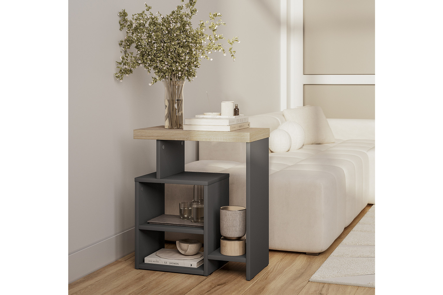 Уютный и стильный журнальный столик для дома, который прекрасно дополнит интерьер любой комнаты. Он идеально подходит для гостиной, спальни, зала или балкона. Полки обеспечивают удобство размещения журналов или комнатных цветов.