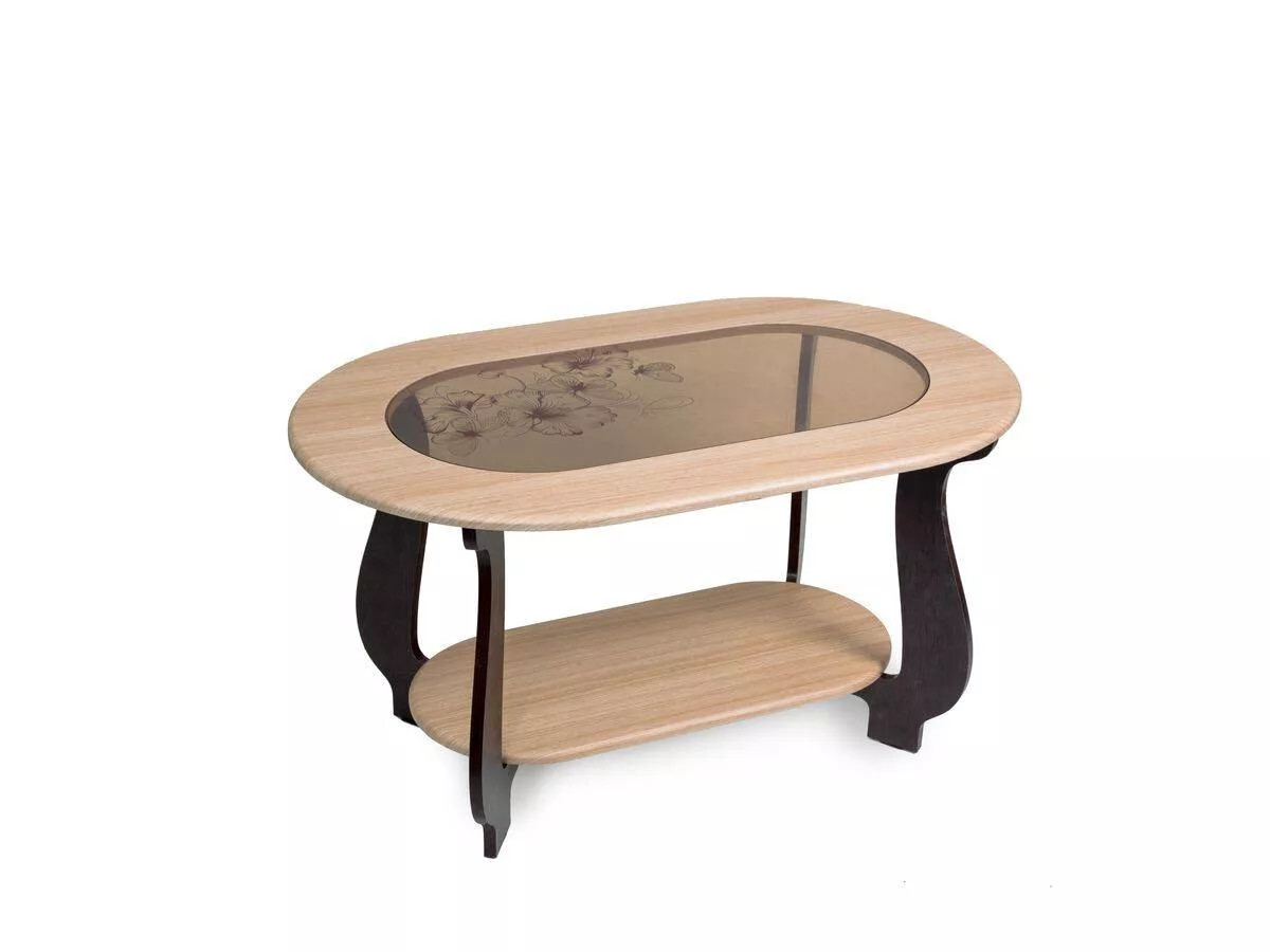 Журнальный столик с цветным рисунком будет привлекать внимание и станет центром уюта. Столешница и полка выполнены из МДФ.
