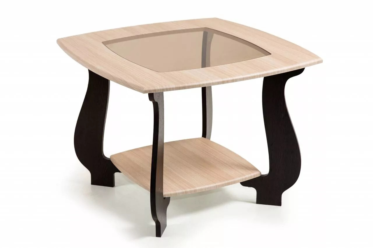Журнальный стол СЖ-22 - небольшой и изящный столик с двумя столешницами. Верхняя столешница со стеклом. Изогнутые ножки придают изделию изысканный вид.
