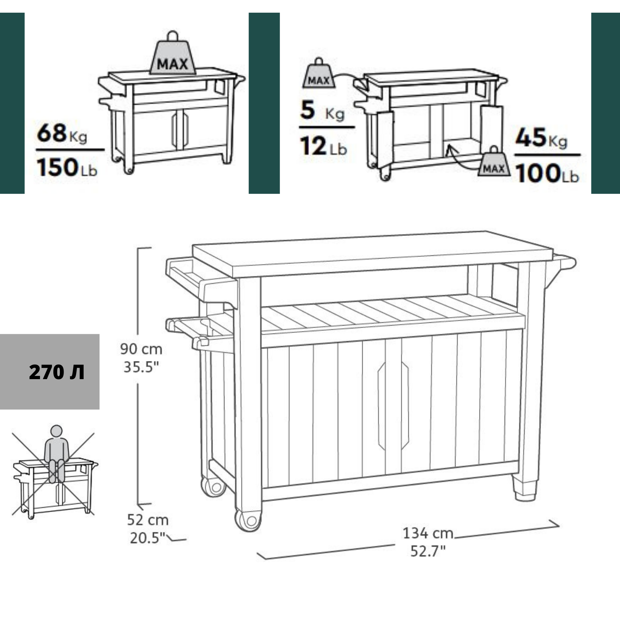Функциональное и оригинальное решение в прекрасном стиле, такое как стол для гриля, украсит любой сад или террасу. Основным преимуществом продукта является его мультифункциональность. Необычная конструкция позволяет использовать его, как стол для приготовления блюд, и как шкафчик для хранения различных продуктов и ингредиентов. Столик оснащен столешницей из нержавеющей стали, удобной ручкой с дополнительными вешалками и колесиками, благодаря которым продукт удобно перемещать в разные места. Во вместительный шкафчик можно положить подручные аксессуары, необходимые для приготовления и подачи блюд на свежем воздухе.