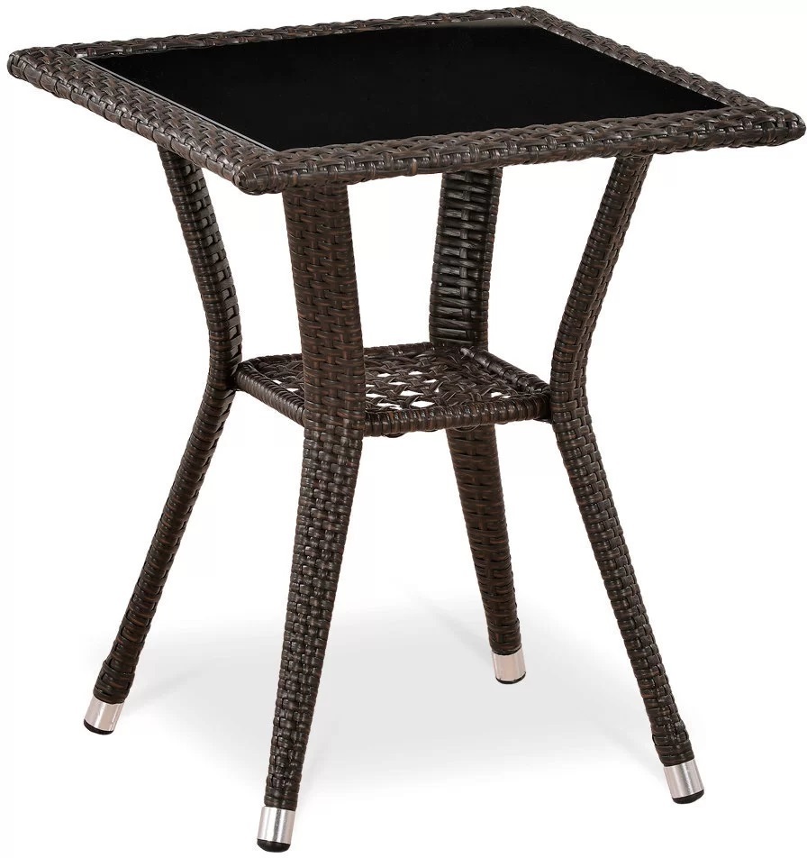 Стол из искусственного ротанга на металлическом каркасе. Компактный, устойчивый, аккуратный стол со стеклянной защитной столешницей; Габариты 450*450 мм, h-500мм. Столешница черное закаленное стекло 5мм, каркас - сталь в оплётке; Универсален в использовании как на улице,так и в закрытых помещениях; Устойчив к воздействию влаги и УФ; Цвет: коричневый, кремовый; Отлично сочетается с любыми стульями и креслами из иск.ротанга.