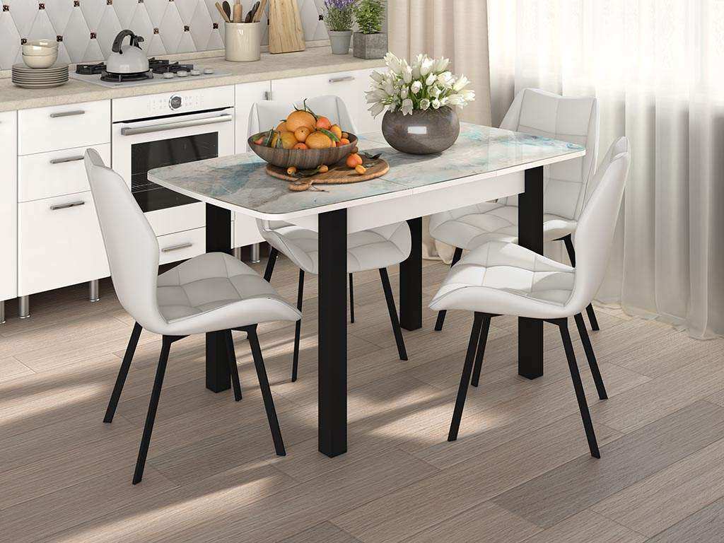 Столовая группа Рим-Флорида СМ-7 ноги окрас квадратный белый/черный/милк станет ярким готовым решением для зоны приема пищи в кухне, гостиной или столовой комнате.