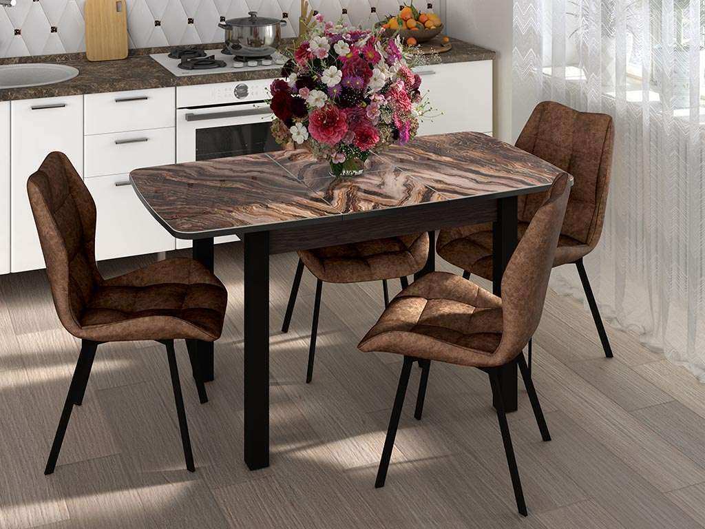 Столовая группа Рим-Флорида СМ-8 ноги окрас квадратный венге/черный/коньяк станет ярким готовым решением для зоны приема пищи в кухне, гостиной или столовой комнате.
