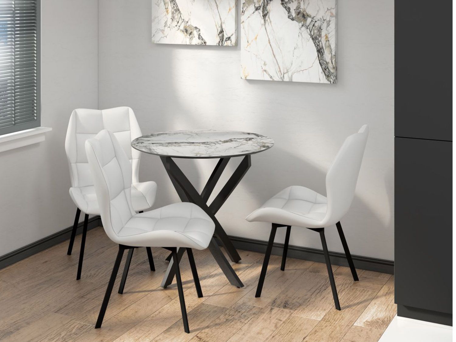 Столовая группа Рим-Монако СМ-6 ноги прямоугольные черные сделает интерьер зоны приема пищи комфортным и современным.