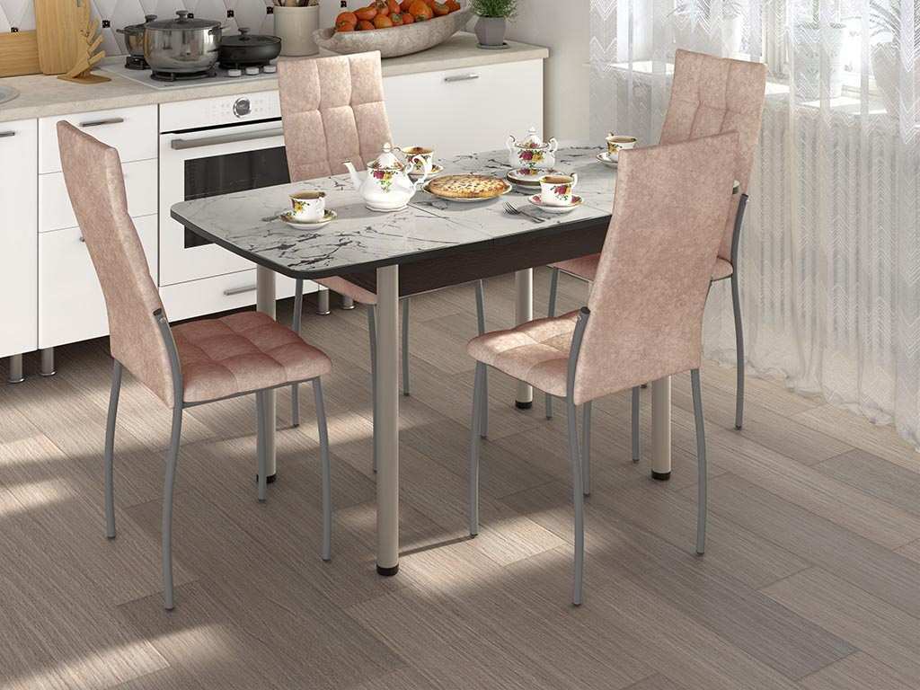 Столовая группа Волна-Флорида СМ-1 ноги окрас круглый венге/серебро/латте станет ярким готовым решением для зоны приема пищи в кухне, гостиной или столовой комнате.