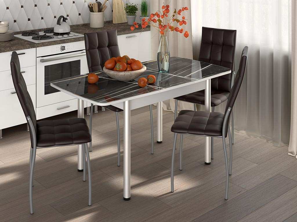 Столовая группа Волна-Флорида СМ-3 ноги окрас круглый белый/серебро/умбер станет ярким готовым решением для зоны приема пищи в кухне, гостиной или столовой комнате.