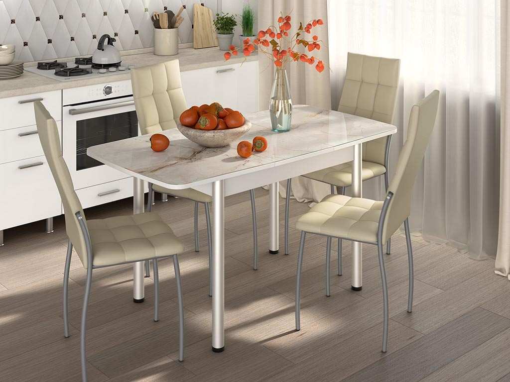 Столовая группа Волна-Флорида СМ-4 ноги окрас круглый белый/серебро/крем станет ярким готовым решением для зоны приема пищи в кухне, гостиной или столовой комнате.