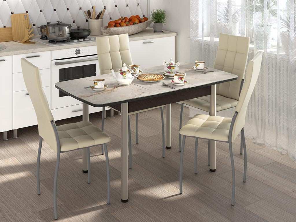Столовая группа Волна-Флорида СМ-4 ноги окрас круглый венге/серебро/крем станет ярким готовым решением для зоны приема пищи в кухне, гостиной или столовой комнате.