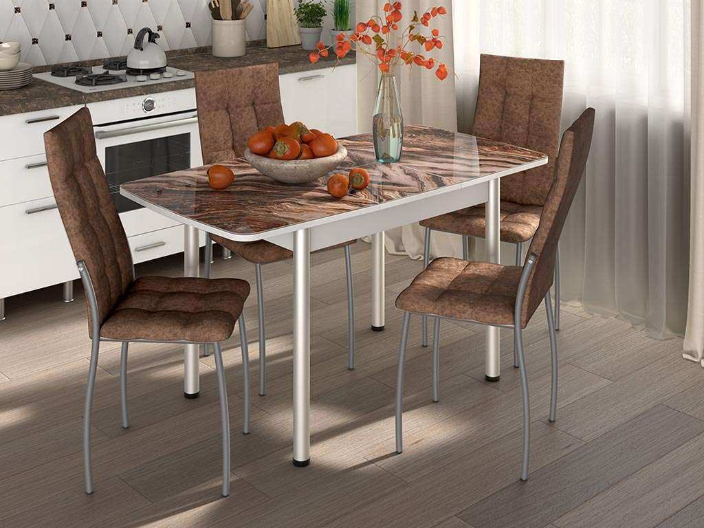 Столовая группа Волна-Флорида СМ-8 ноги окрас круглый белый/серебро/коньяк станет ярким готовым решением для зоны приема пищи в кухне, гостиной или столовой комнате.