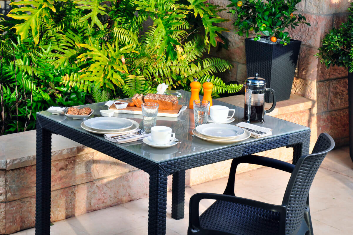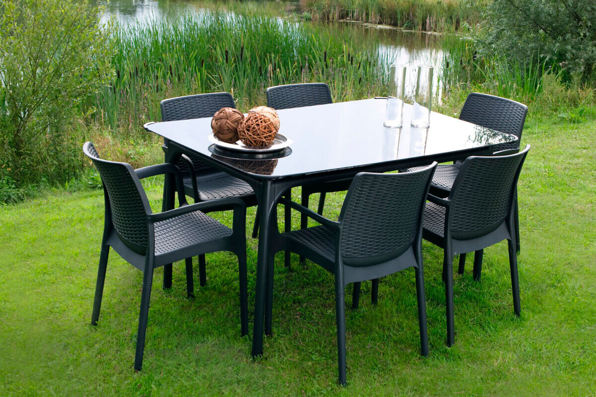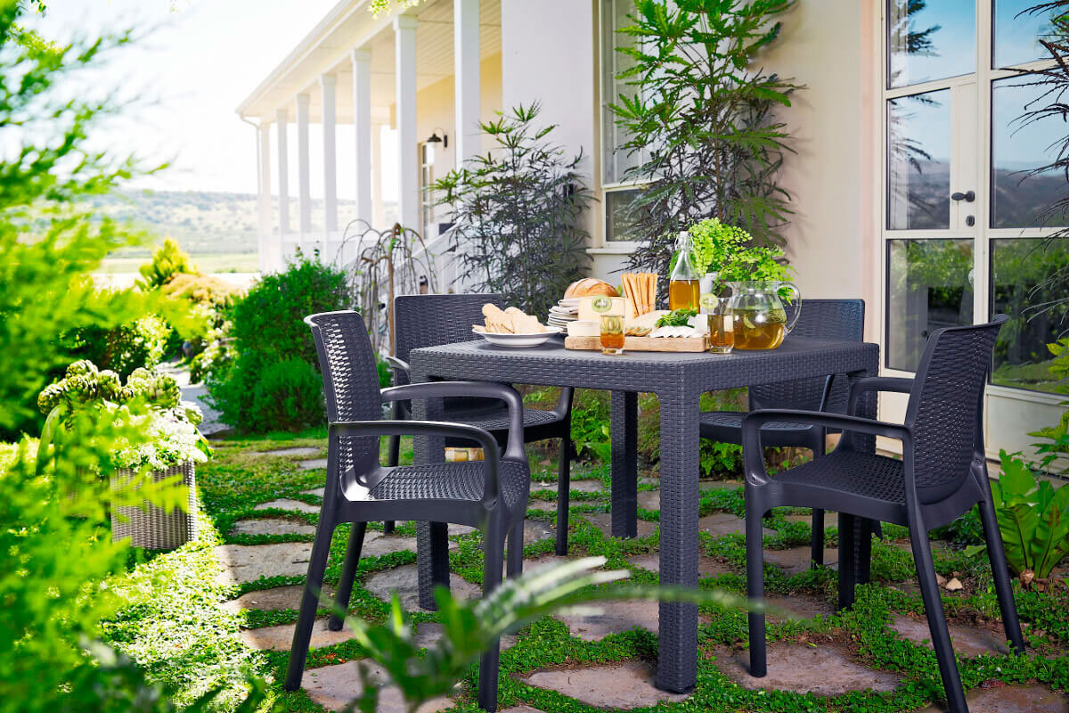 Для формирования комплекта уличной пластиковой мебели в нашем магазине вы можете купить пластиковый стол Melody или Melody Quatro, Futura или стол со стеклом Samoa
