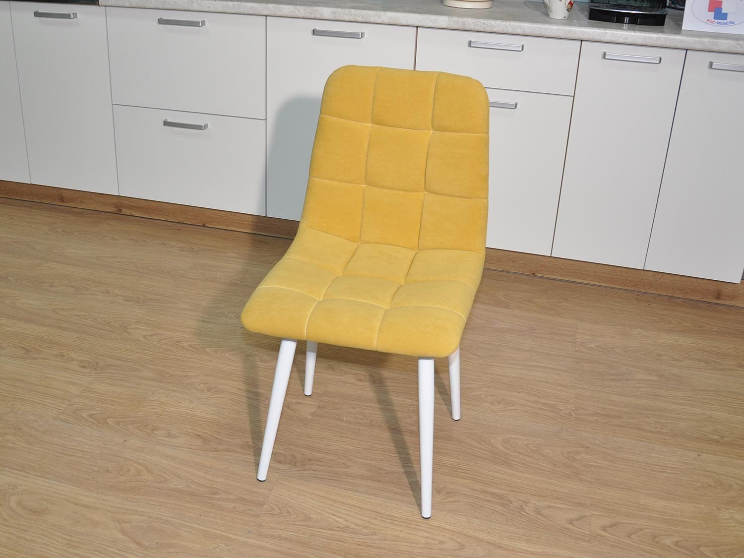 Стул Х / белый / велюр горчица - современное решение для интерьера гостиной комнаты или столовой зоны.