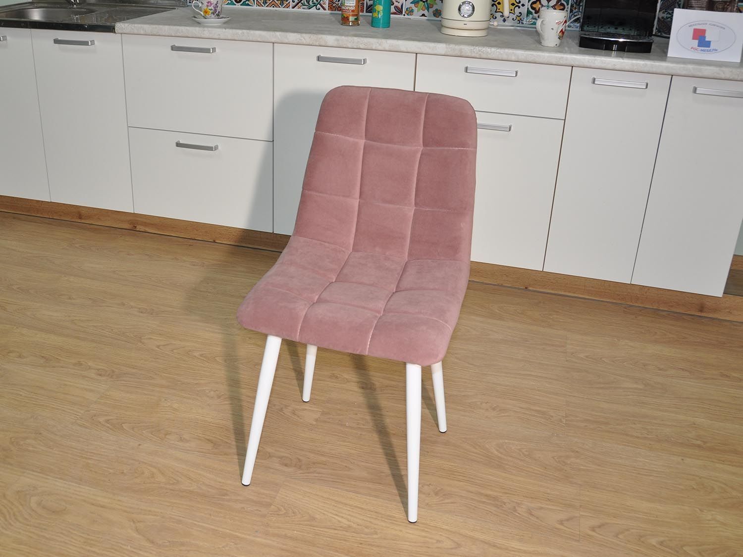 Стул Х / белый / велюр пыльная роза - современное решение для интерьера гостиной комнаты или столовой зоны.