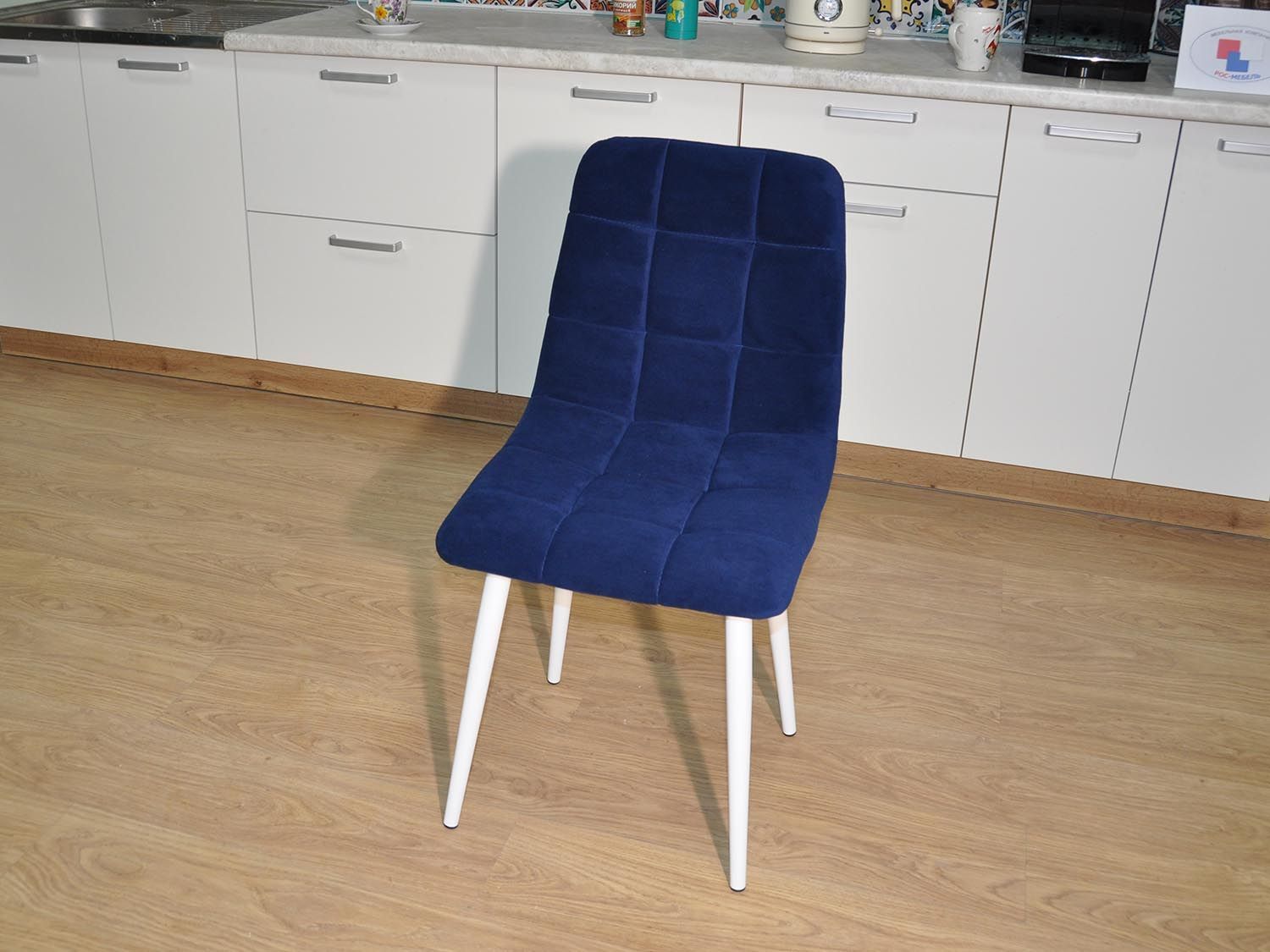 Стул Х / белый / велюр синий - современное решение для интерьера гостиной комнаты или столовой зоны.
