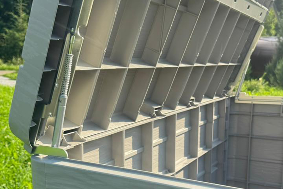 Многофункциональный большой сундук-ящик Dolomiti объемом 970 литров - это стильное и вместительное решение для хранения вещей на улице.