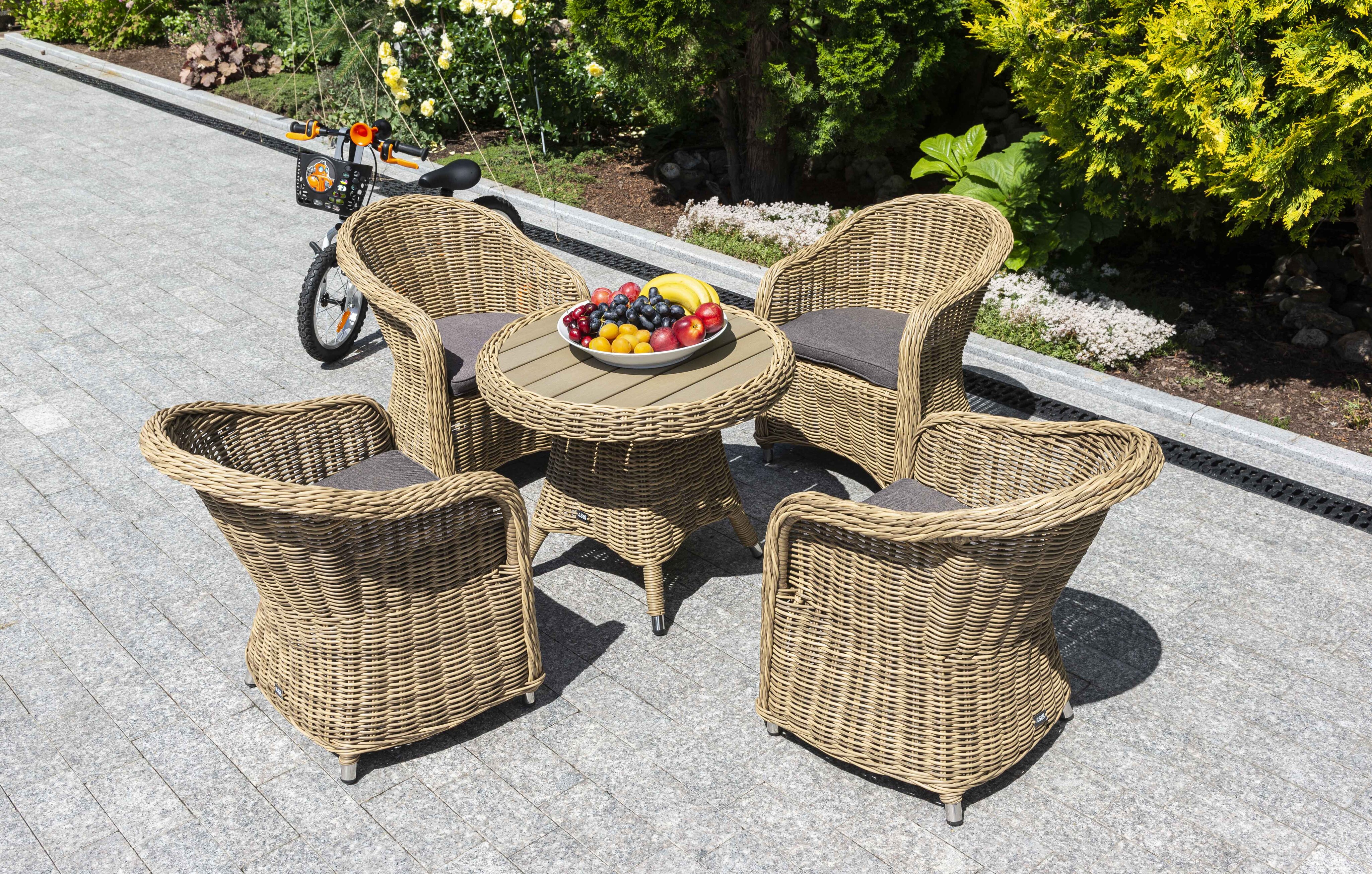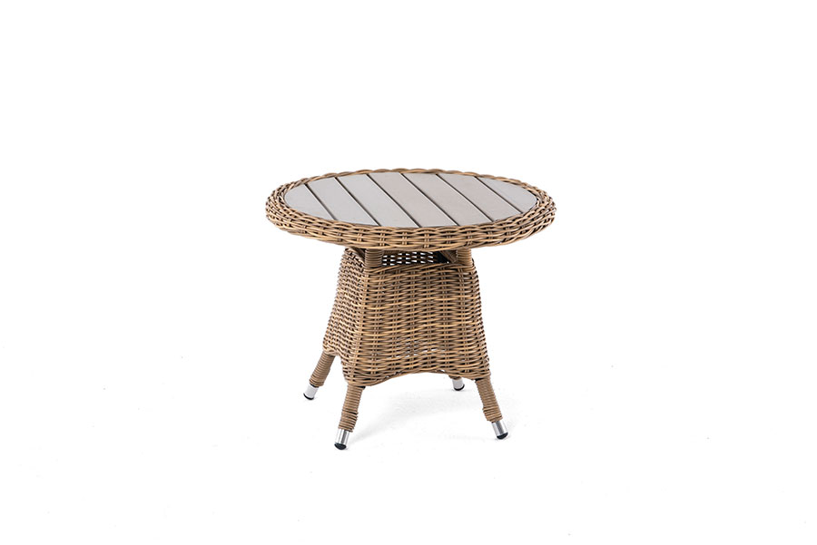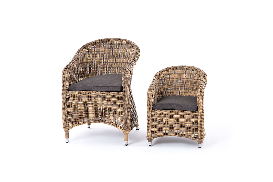 Каркас изготовлен из легкого алюминия, благодаря чему перемещать мебель сможет даже ребенок. В качестве декоративной оплетки использован искусственный ротанг, устойчивый к механическим повреждениях, ультрафиолету, атмосферным осадкам. Столешница изг "Равенна" кресло детское плетеное, цвет соломенный 4шт. 450Х530Х580, "Равенна" кофейный стол из искусственного ротанга, цвет соломенный 1шт. 600Х600Х480,