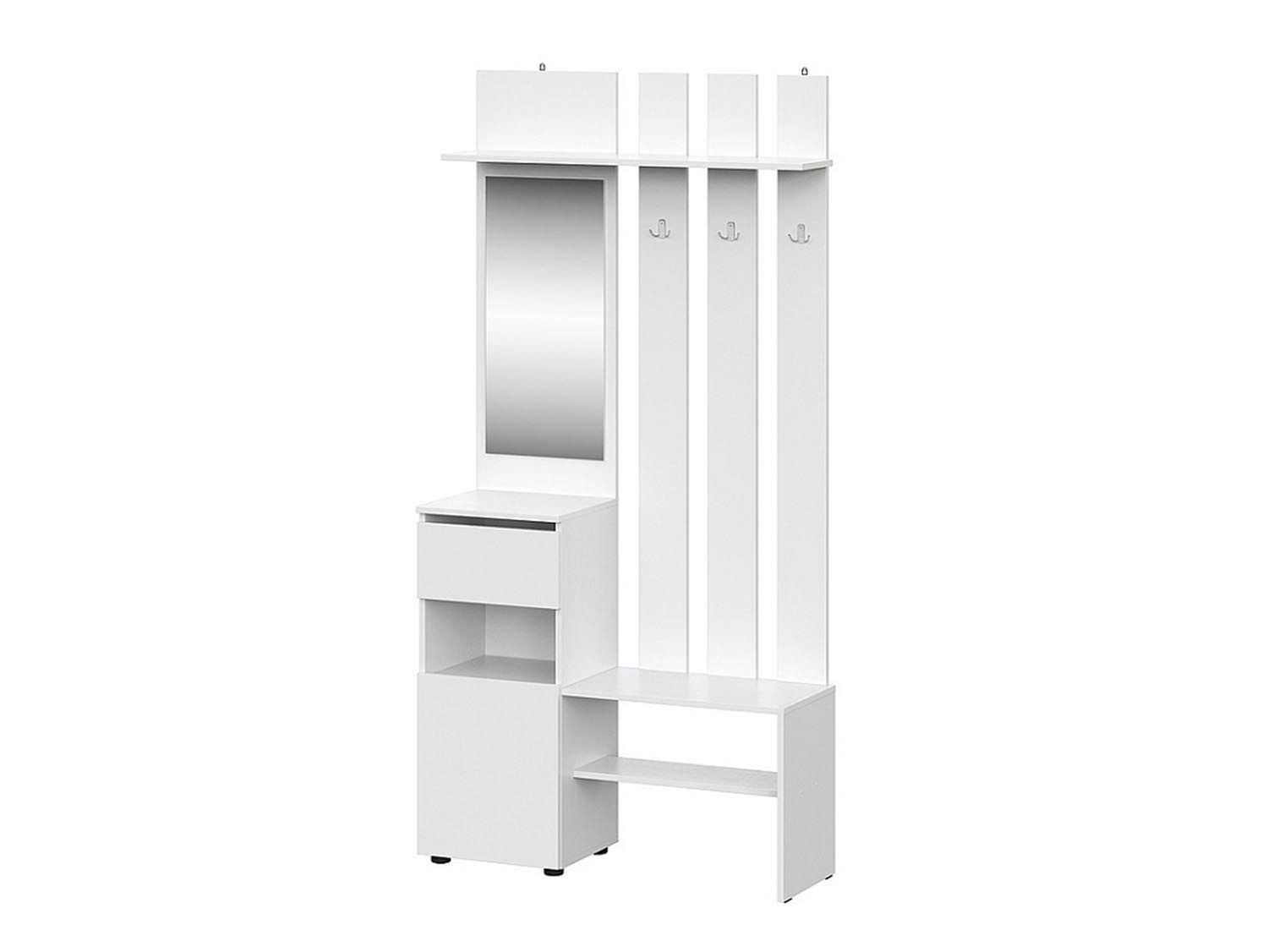 Токио вешалка с зеркалом / Белый текстурный - готовое решение для прихожей комнаты.