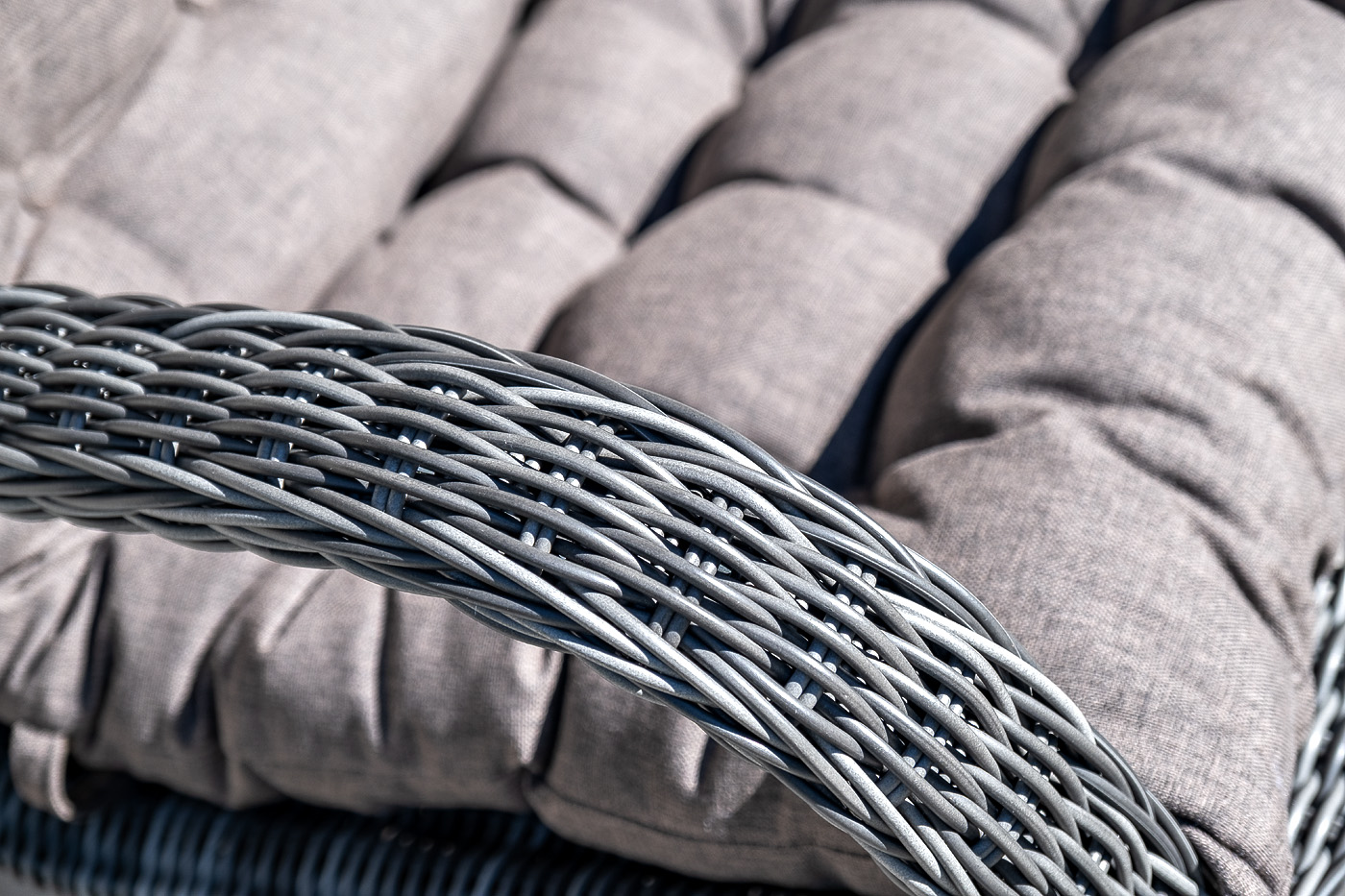 Одноместная лаунж-зона «Толедо» для зоны отдыха выполнена из круглого искусственного ротанга в цвете графит.