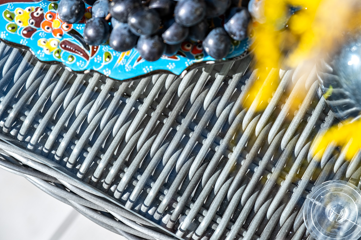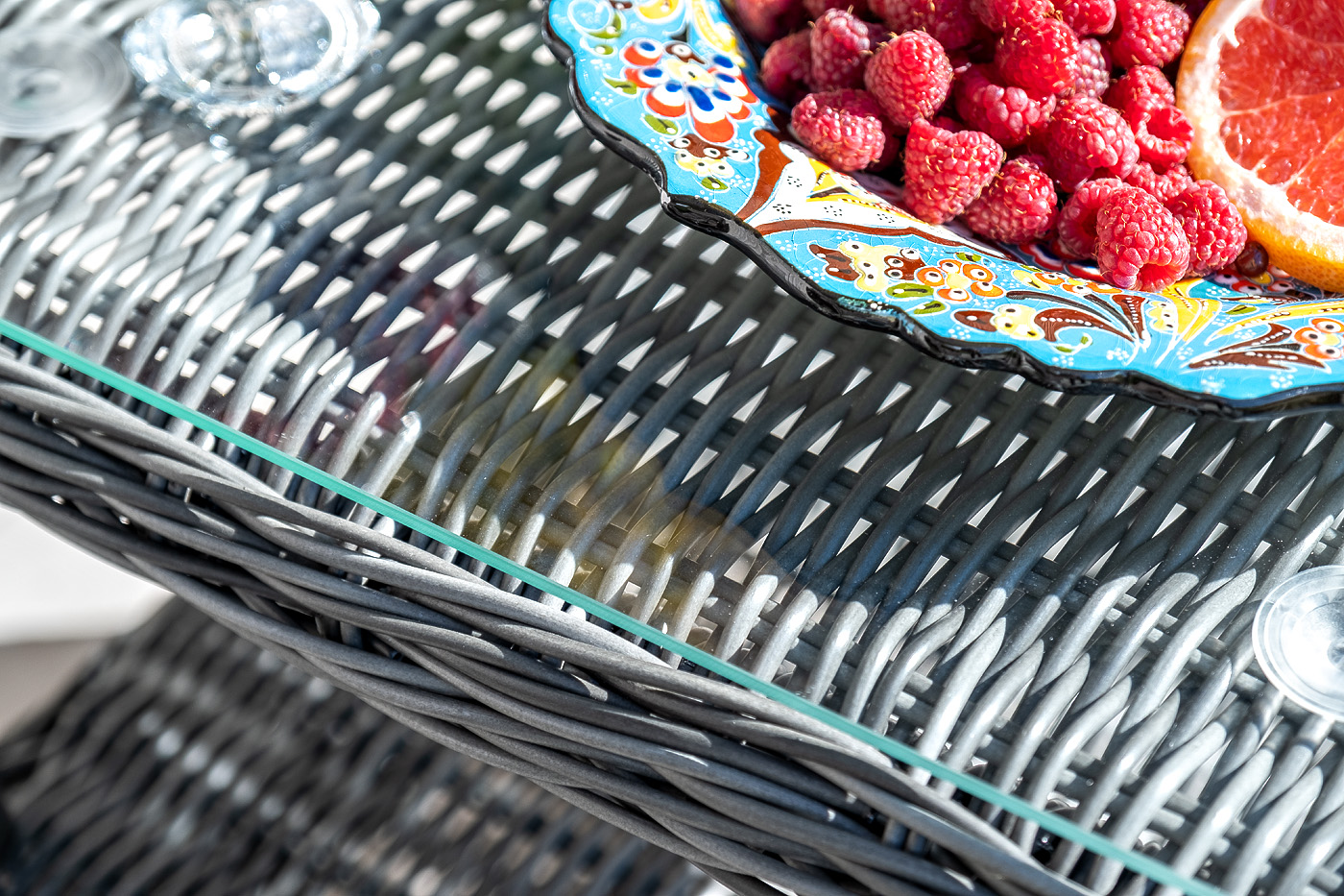 Высота спинки – 690 "Толедо" кресло плетеное с подушками, цвет графит 1шт. 690Х810Х990, "Толедо" пуф плетеный, цвет графит 1шт. 510Х420Х470, "Форио" столик кофейный из искусственного ротанга, цвет графит 1шт. 450Х450Х520,