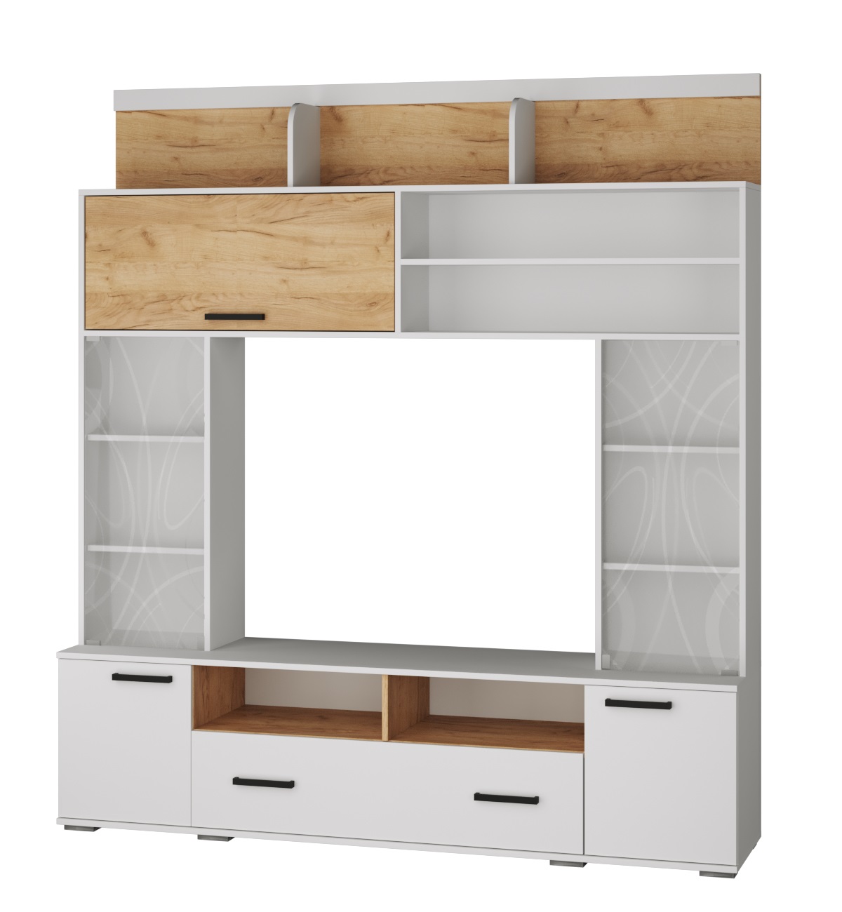 В поисках функциональной мебели для гостиной в скандинавском стиле рекомендуем присмотреться к коллекции Оскар-18. Стенка выполнена в трендовом декоре дуб крафт золотой/белый и украшена стеклянными узорчатыми дверцами. Благодаря разнообразию зон хранения модуль прекрасно подойдет для книг, сервиза, предметов декора и различных бытовых мелочей. В центральной нише Вы с легкостью разместите телевизор, а под ней - сопутствующую технику и журналы.