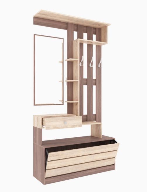 Если пространство Вашей прихожей не позволяет расположить много мебели, советуем обратить внимание на секцию из коллекции Ямайка. Модуль уникален по своей функциональности и содержит нишу для обуви с откидной дверцей, выдвижной ящик для мелочей, открытую вешалку с 3-мя крючками, полку-антресоль, набор открытых полок и зеркало. Ширина в 110 см позволит Вам расположить секцию даже в малогабаритной прихожей.