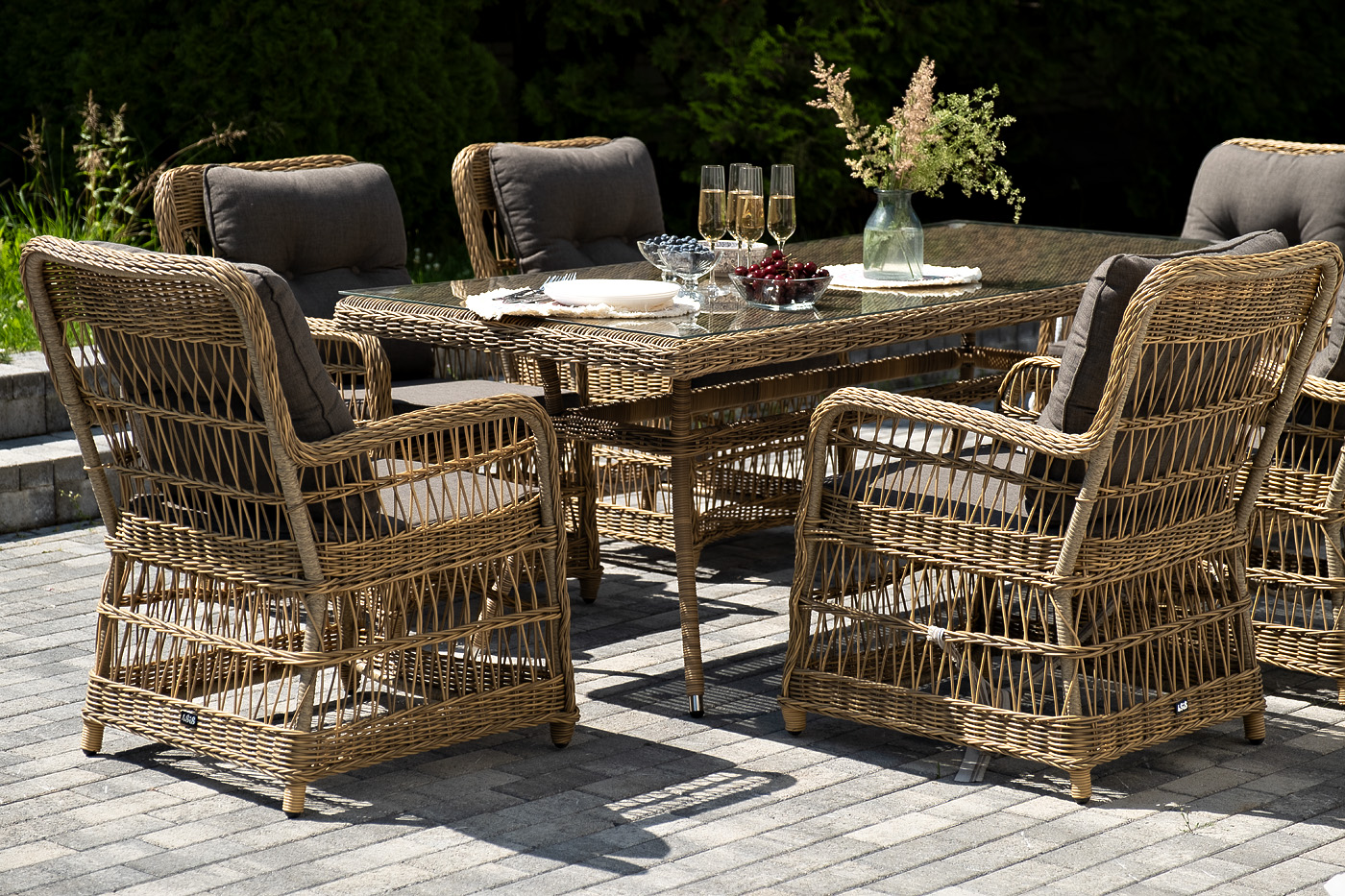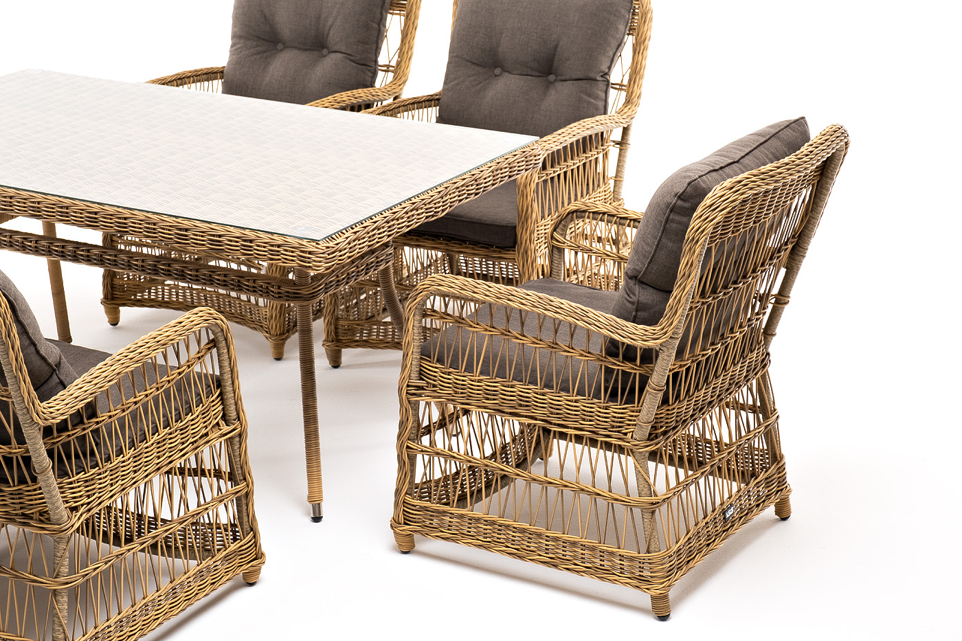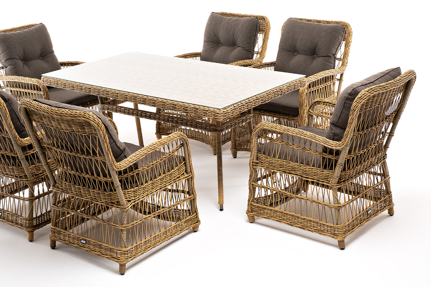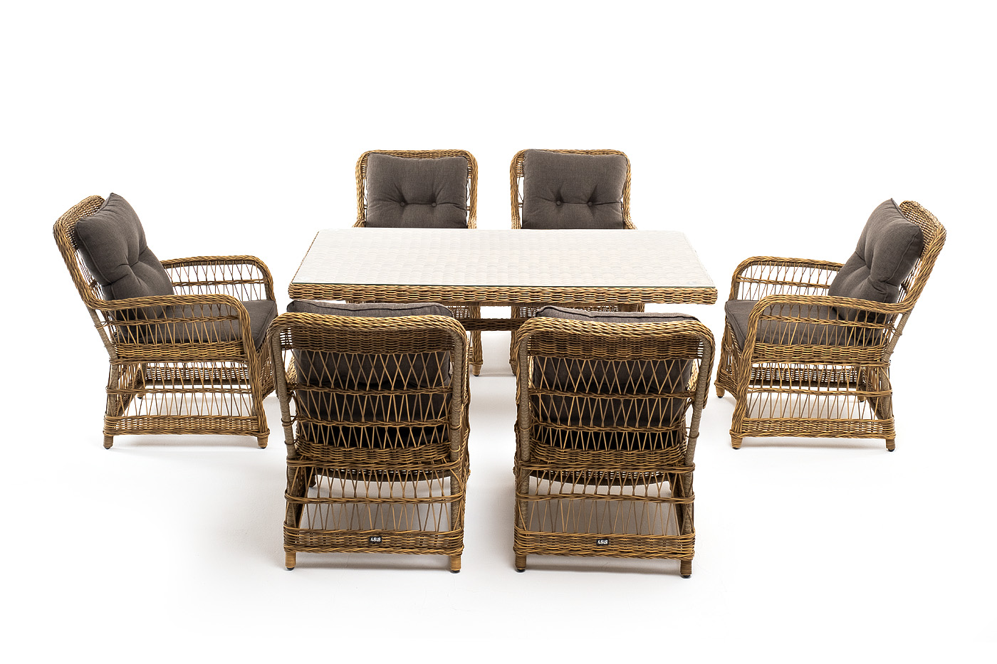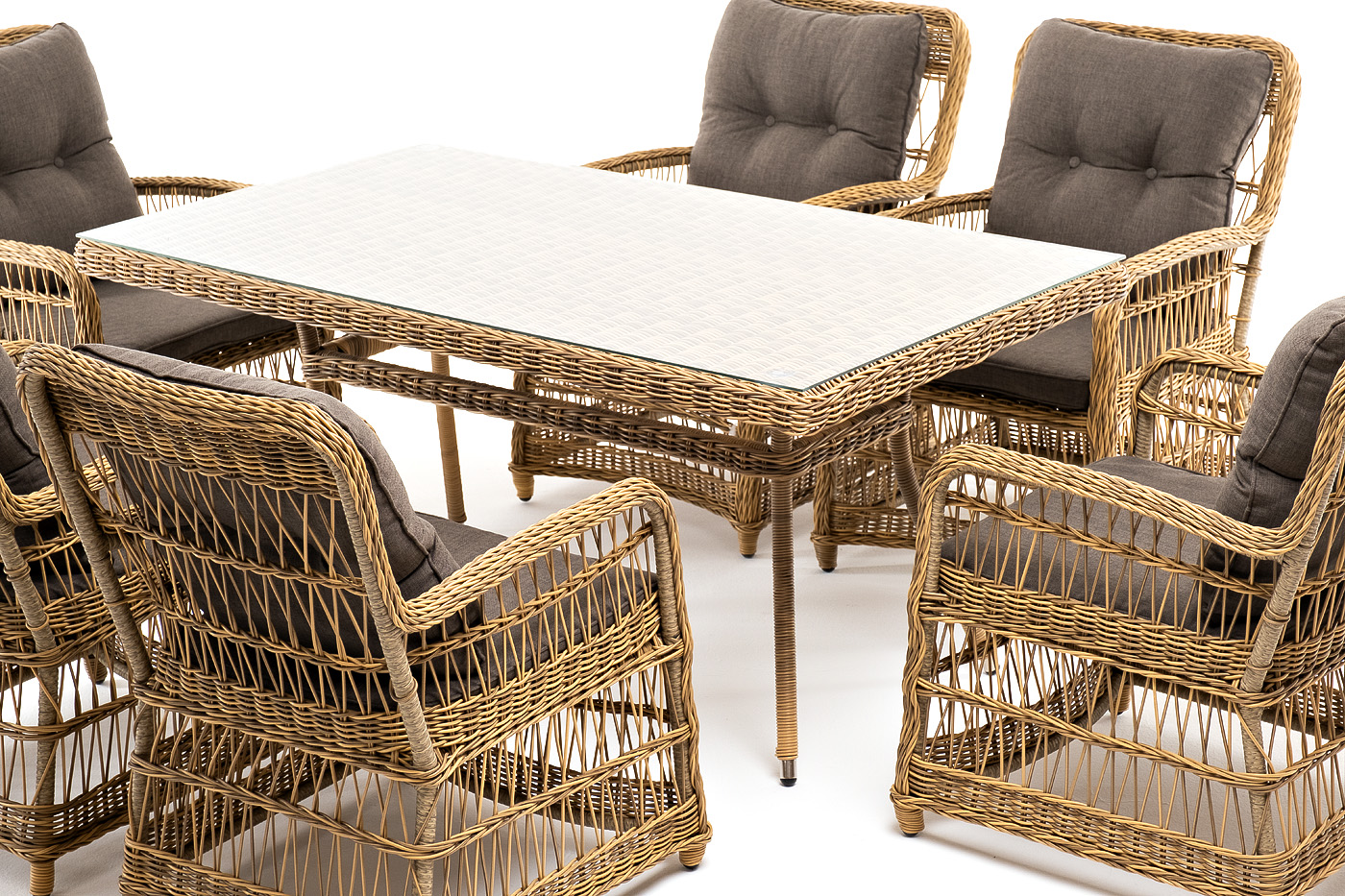 Глубина сиде "Латте" плетеный стол из искусственного ротанга 160х90см, цвет соломенный 1шт. 1 600Х900Х750, "Цесена" кресло плетеное из искусственного ротанга, цвет соломенный 6шт. 600Х800Х910,