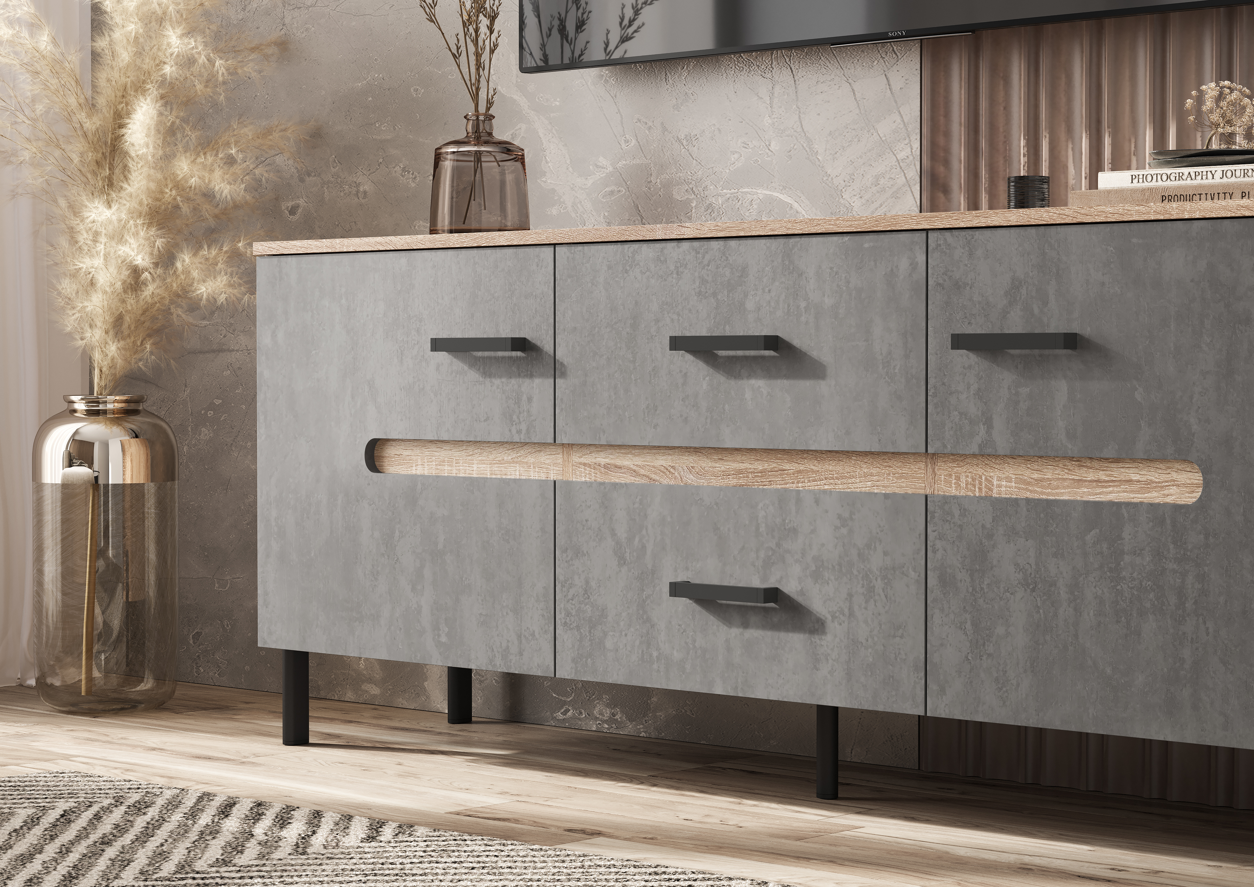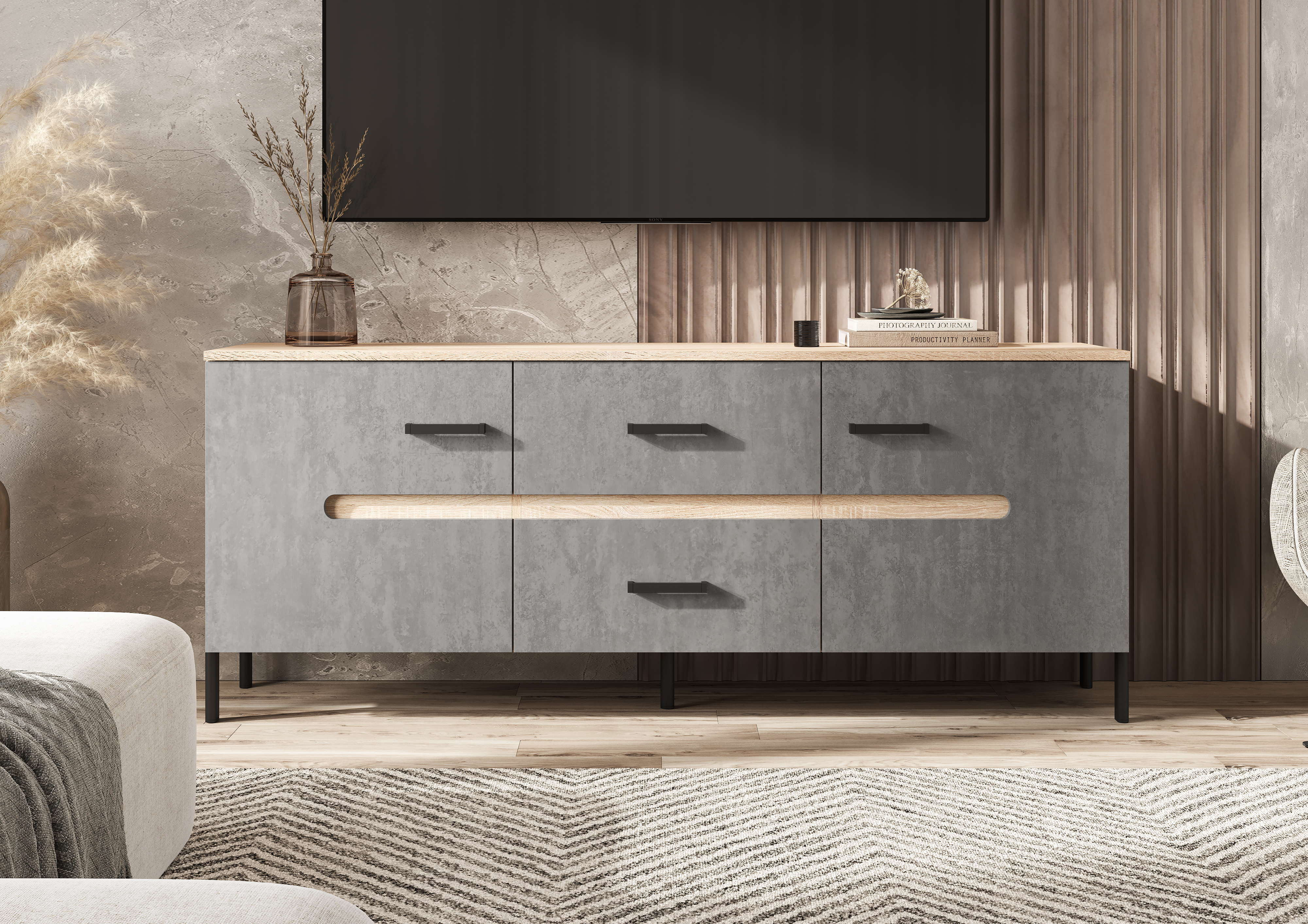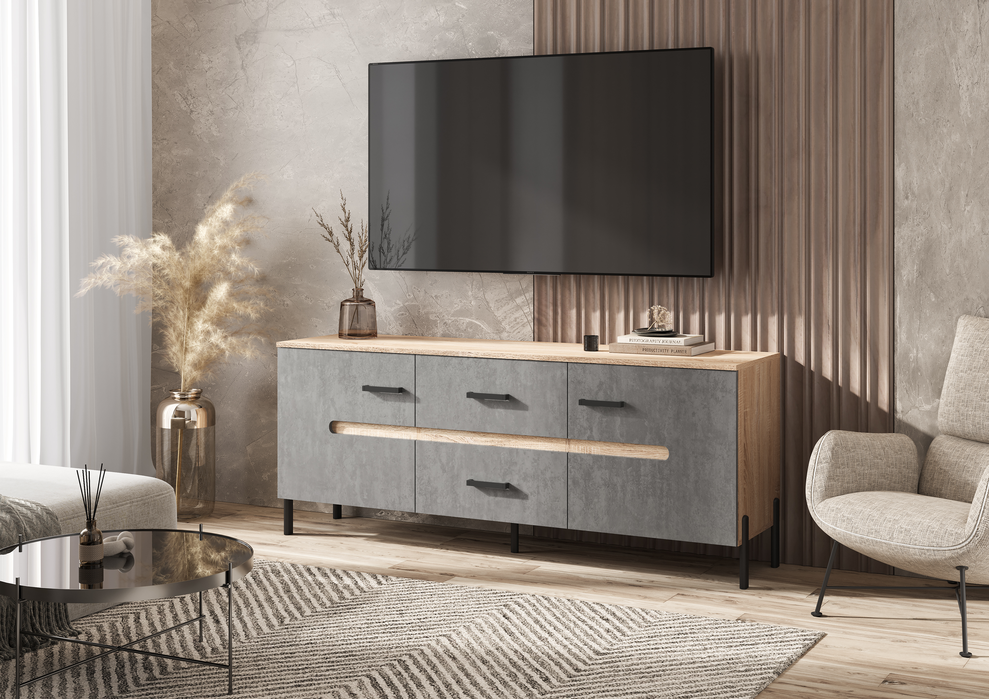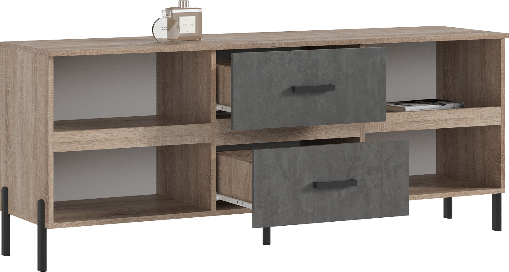 Тумба под телевизор Ким станет модным решением для гостиной. Это не только модуль по телеаппаратуру, это также зона для хранения книг, журналов и аксессуаров для ТВ.