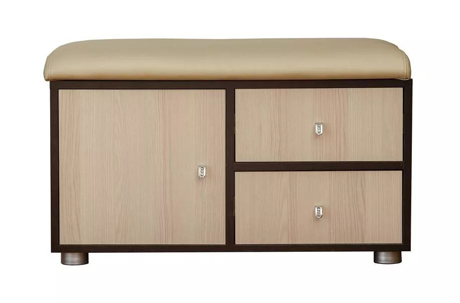 В тумбе имеются два выдвижных ящика, которые предназначены для хранения различных мелочей, которые будут всегда под рукой. Также обувница имеет мягкое комфортное сиденье, что позволит Вам с легкостью обуваться или снимать обувь.