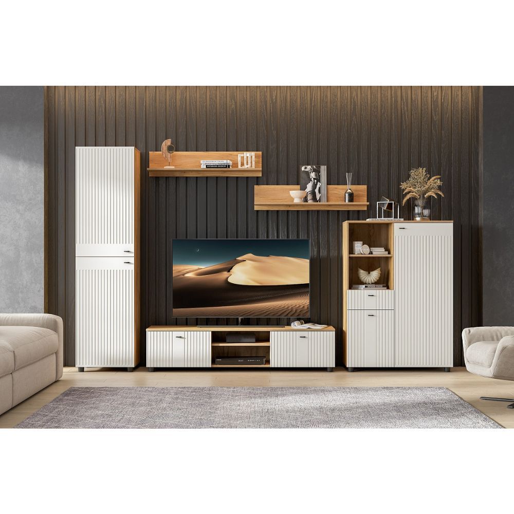 Элегантная тумба МЦН Милан гармонично впишется в интерьер гостиной в современном стиле и украсит мебельный гарнитур. Лаконичная фрезеровка подчеркивает мягкую матовую текстуру фасадов. Наличие открытых и закрытых ниш позволит разместить различные по виду и размеру вещи: книги, предметы декора, вещи в небольших коробках и т.д.
