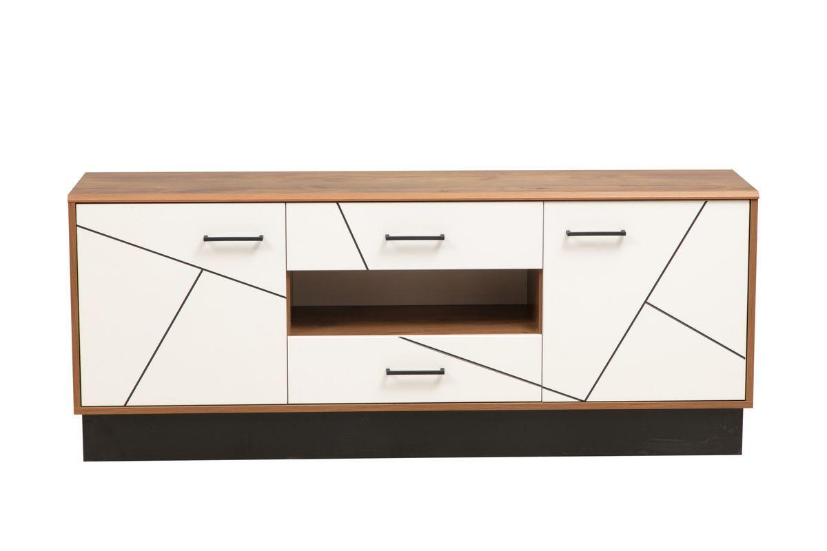 Тумба под телевизор из серии Гамма для гостиной и спальни. Ручки выполнены из пластика, направляющие шариковые. Фасад комбинированный МДФ в пленке ПВХ с фрезеровкой УФ-печатью.