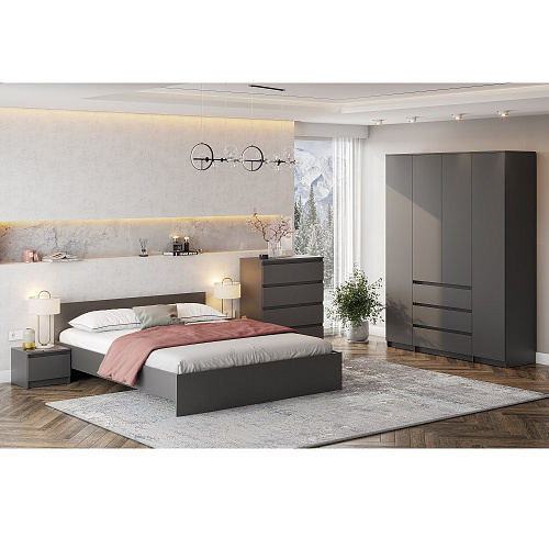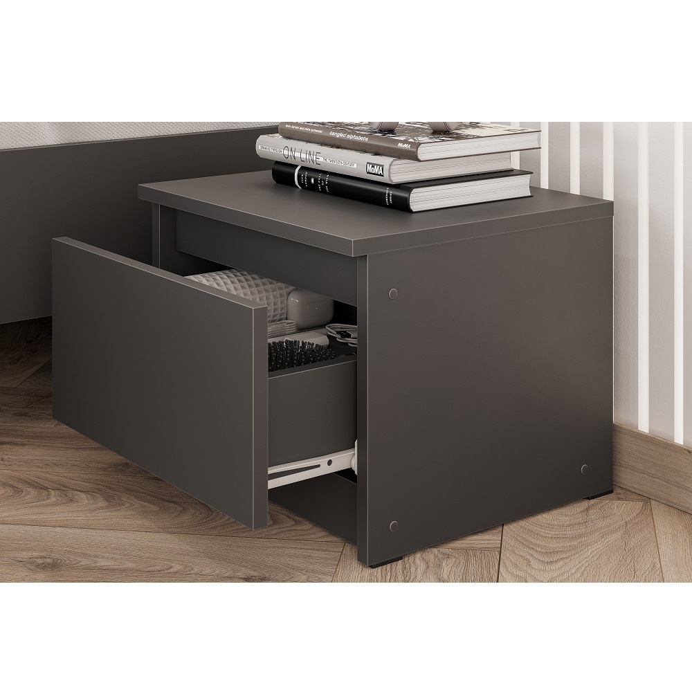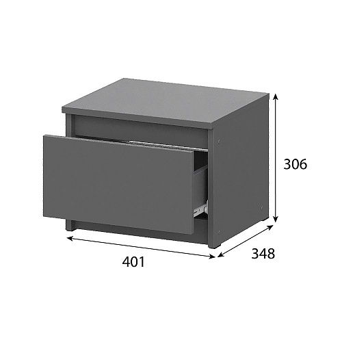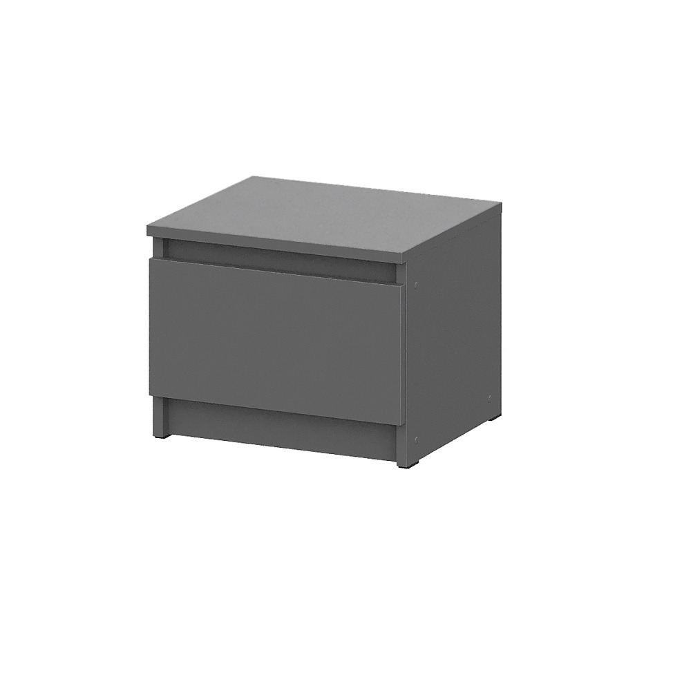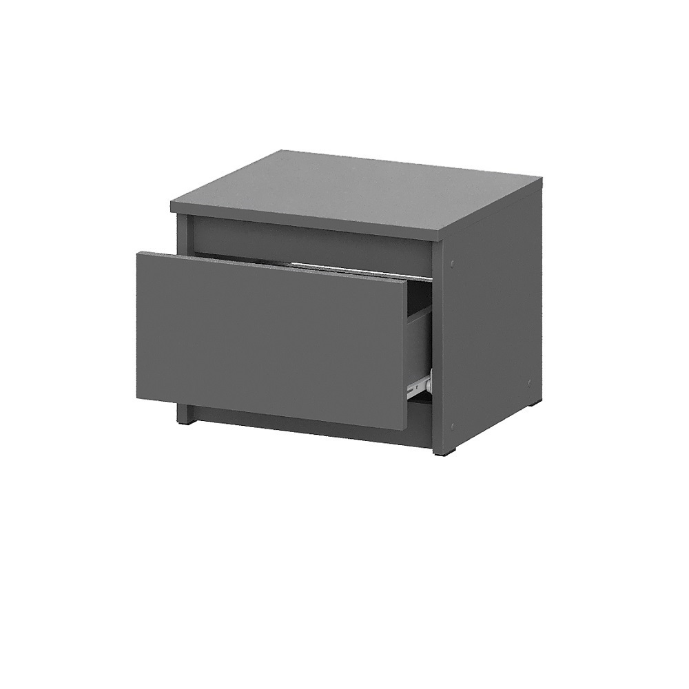 Прикроватная тумба из модульной серии Денвер - это стильный и функциональный элемент мебели для спальни в современном стиле. Она имеет простой и элегантный дизайн, который дополнит ваш интерьер. Тумба выполнена в цвете графит серый. Выдвижной ящик подойдет для хранения книг, журналов и других предметов.