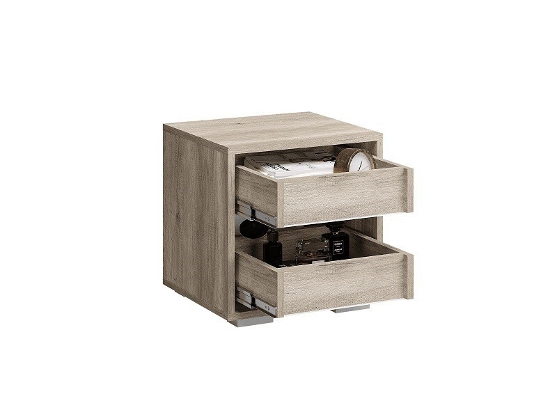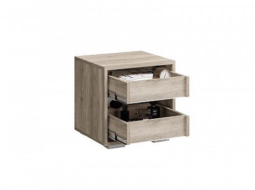 Прикроватная тумба Наоми ТБ-15 в цвете дуб каньон с графитовыми фасадами — стильный элемент для вашей спальни. Интегрированные ручки на фасадах двух выдвижных ящиков добавляют изысканности. Эта комбинация цветов позволит тумбе гармонично вписаться в светлый современный интерьер.