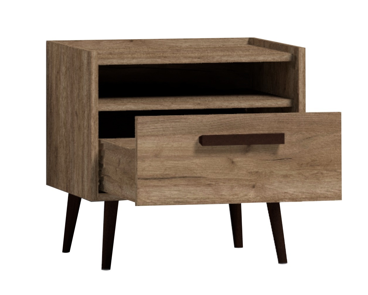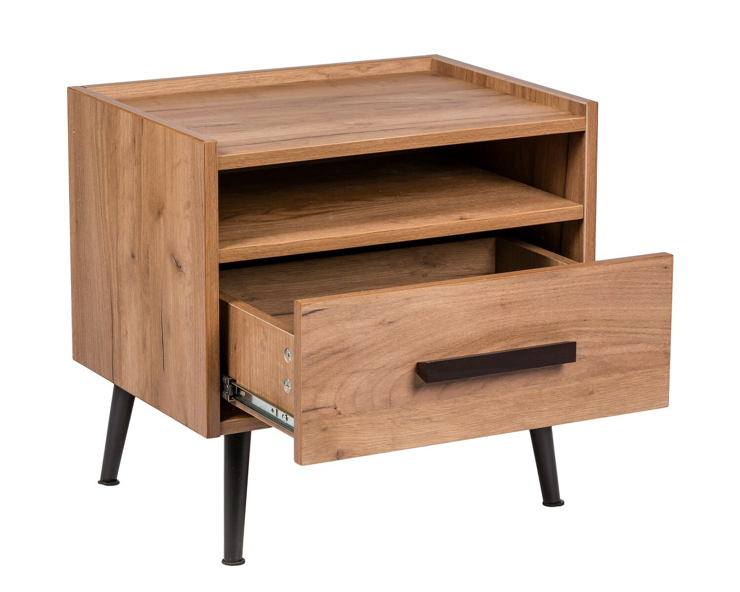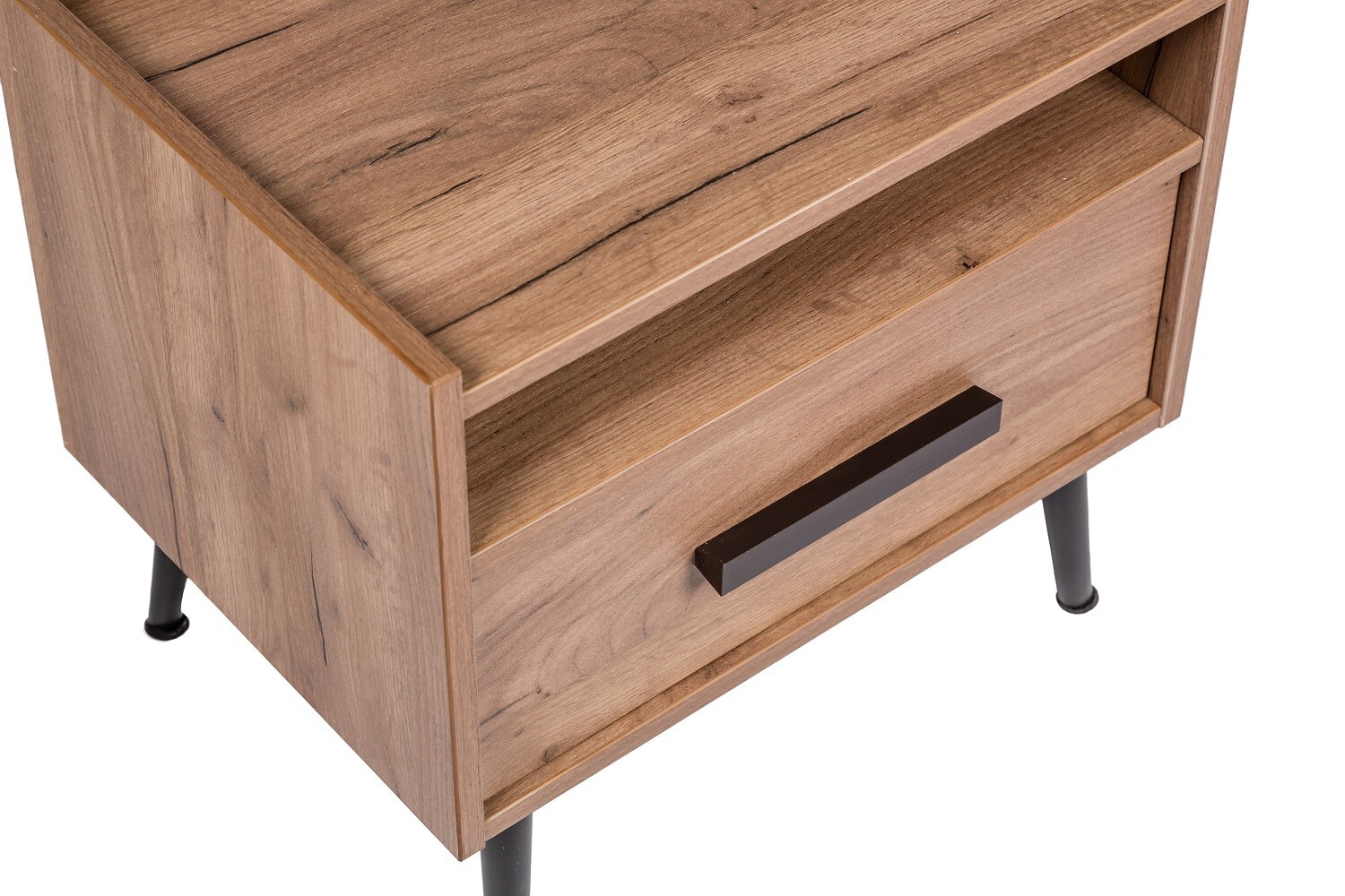 NATURE 41 Тумба прикроватная - стильная и функциональная. Ручки и опоры из массива подчеркнут экологичность и естественную красоту дерева. Бортики тумбы – это не только дизайнерская находка, они выполняют функцию ограждения, предотвращая падение мелких предметов. Аккуратные черные опоры и ручки тумбы прикроватной выполнены из массива дерева. Они подчеркнут естественную красоту древесного декора и добавят мебели роскоши и «характера».