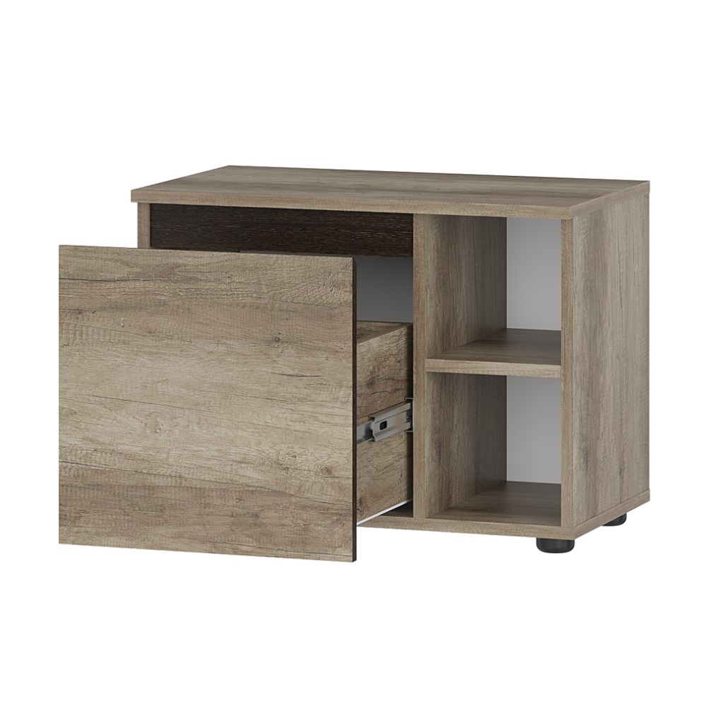 Компактная прикроватная тумба «Энигма» сэкономит пространство, но при этом позволит держать все самые нужные вещи рядом. Тумба состоит из одного вместительного ящика для постельного белья, а также открытых полок для мелочей.