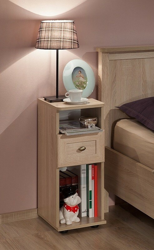 Прикроватная тумба - компактное и привлекательное дополнение к основному мебельному гарнитуру в спальне. Высокая тумбочка из коллекции Sherlock гармонично впишется в классический интерьер Вашей спальни и не займет много места. Модель оснащена столешницей со скругленными углами, куда поместится ночник, узкий выдвижной ящик на шариковых направляющих полного, плавного и бесшумного выдвижения, а также две открытые ниши. Нижняя подойдет для хранения альбомов, журналов, планшета, а верхняя - для различных мелочей, которые необходимо иметь под рукой перед сном и после пробуждения.