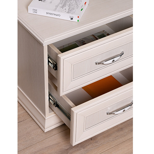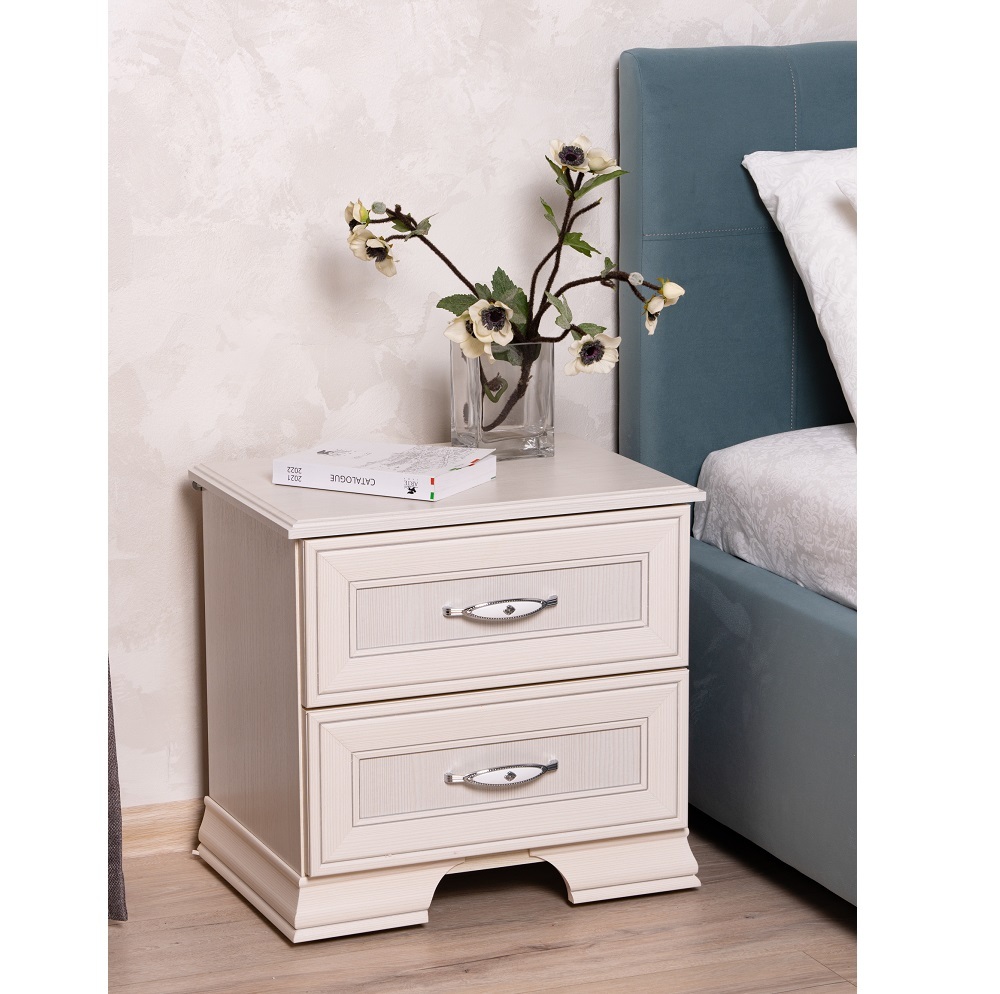 Прикроватная тумба из коллекции Венеция гармонично дополнит основной мебельный гарнитур в детской или спальне. Несмотря на небольшие габариты, имеет 2 вместительных ящика, в которых Вы сможете расположить те вещи, которые необходимо иметь под рукой перед сном или после пробуждения. Утонченная фурнитура, выполненная в классическом стиле, является несомненным украшением модуля и добавляет ему стиля.