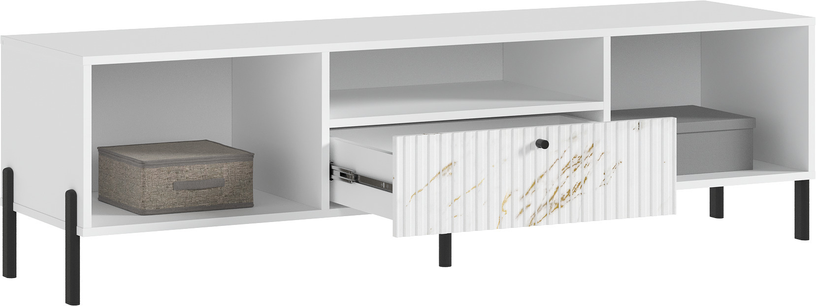 Тумба для ТВ Оливия дополнит современный интерьер комнаты. Вместительные ящики позволят организовать место хранения белья и одежды, аксессуаров и других нужных предметов.