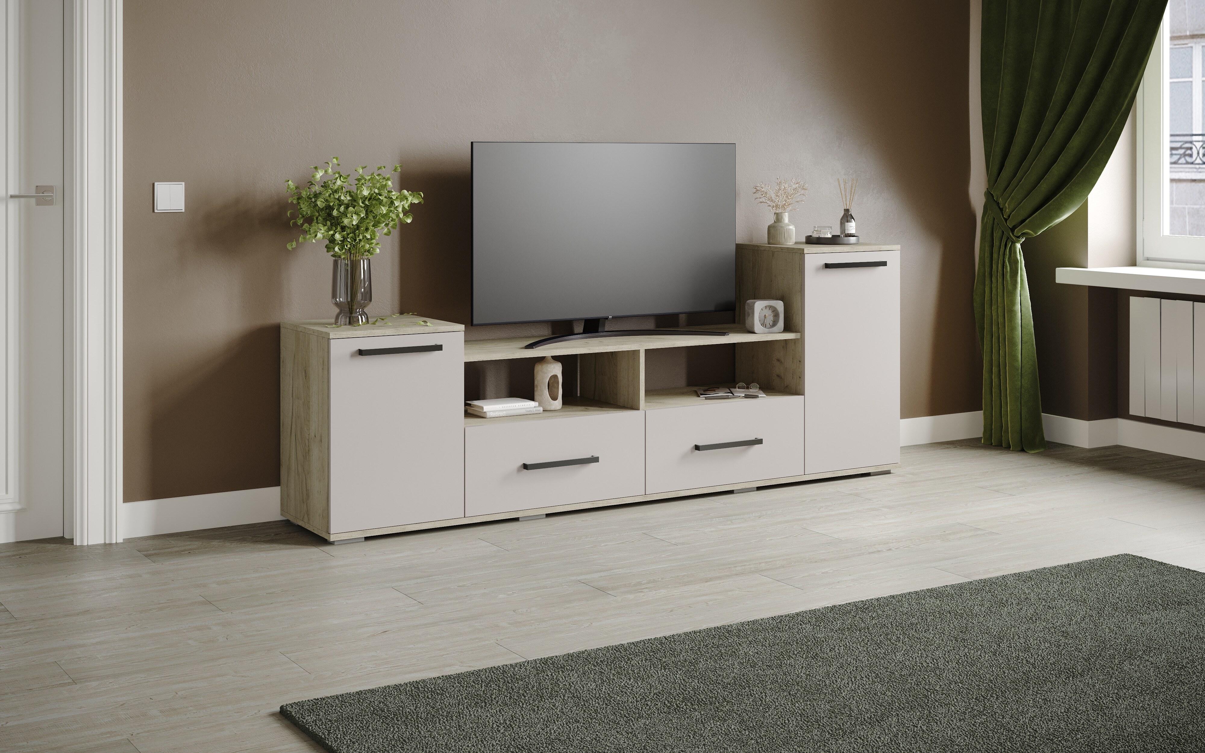 Тумба под телевизор Парус-2 станет модным решением для гостиной. Это не только модуль по телеаппаратуру, это также зона для хранения книг, журналов и аксессуаров для ТВ.